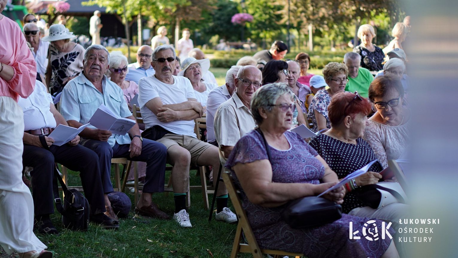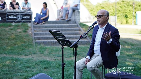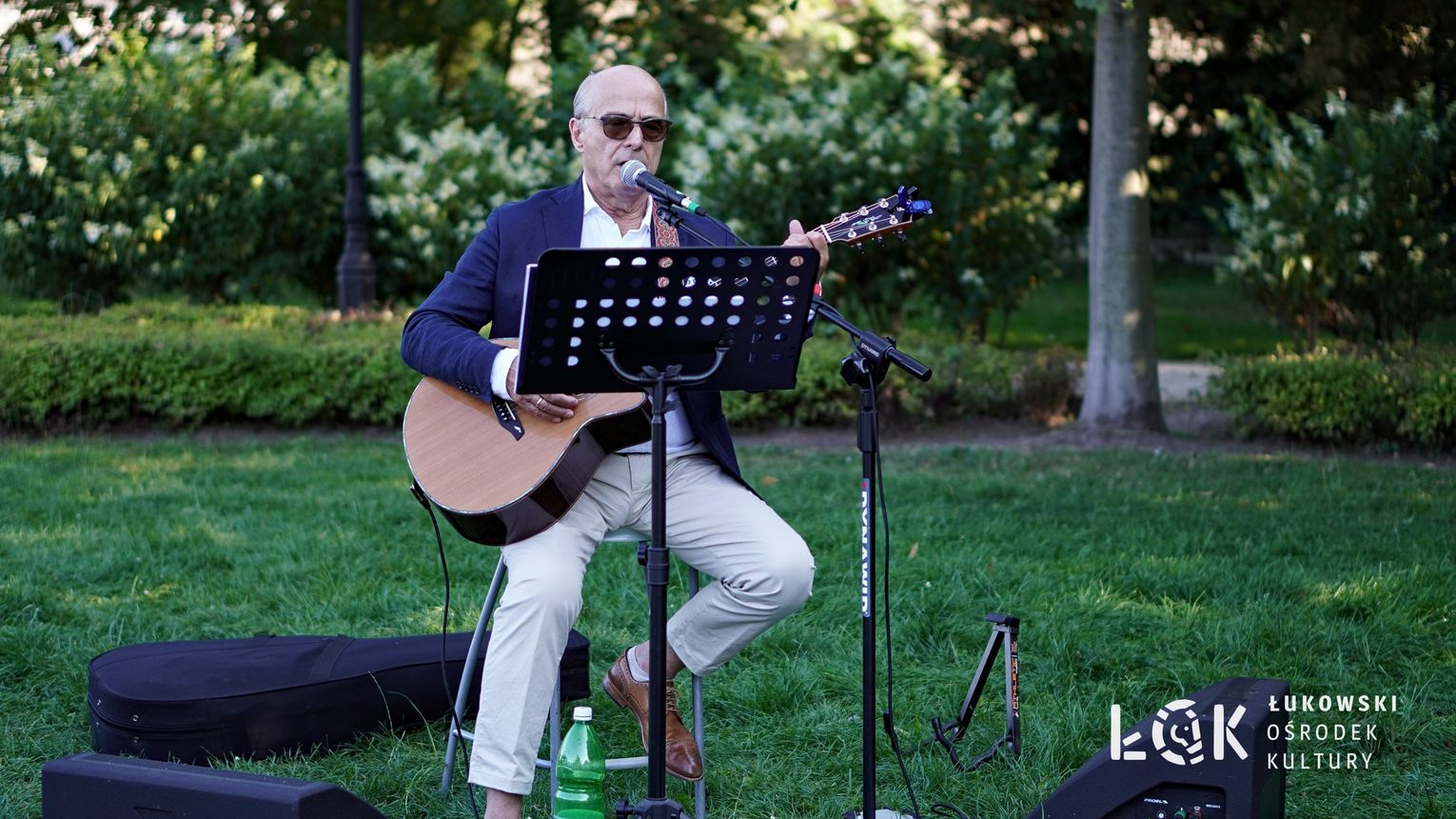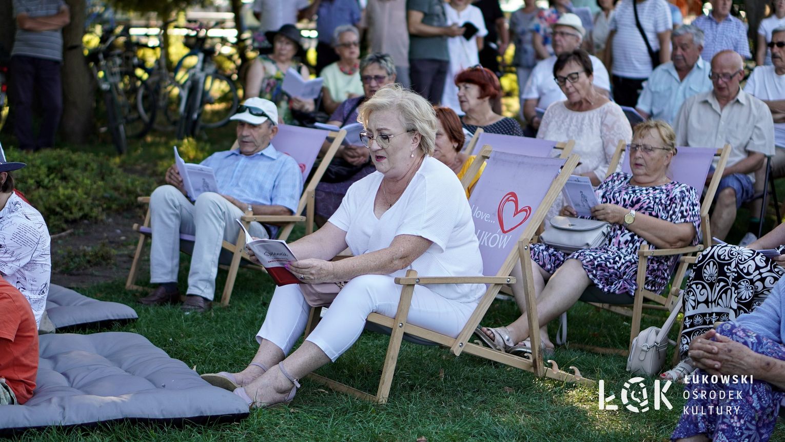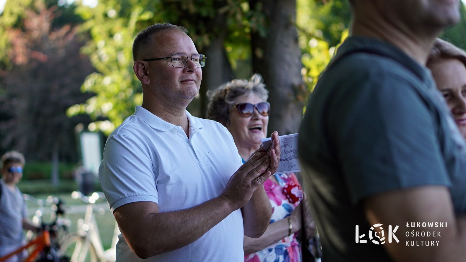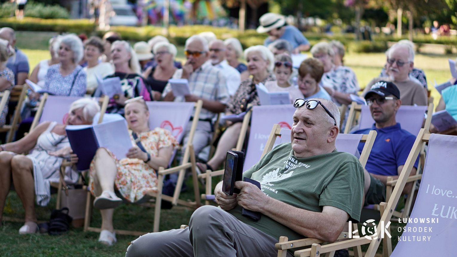 Jan Pospieszalski to ikona telewizji i estrady, której nie trzeba nikomu przestawiać. Artysta przyjechał specjalnie na nasze spotkanie, aby pośpiewać z licznym i rozentuzjazmowanym tłumem łukowian. Nasze wydarzenie odbyło się w parku miejskim, w kojącym tego upalnego dnia, cieniem drzew. Przy okazji zgromadzili się też wierni fani Pospieszalskiego, którzy wręcz nie chcieli wypuścić go do domu.