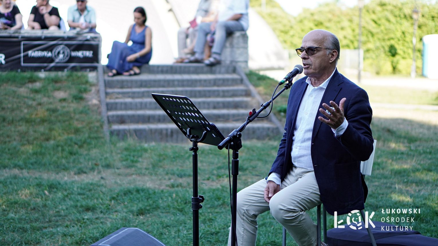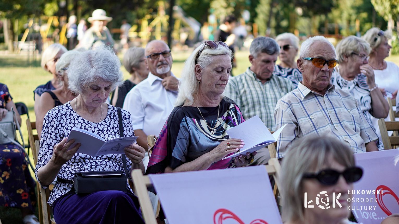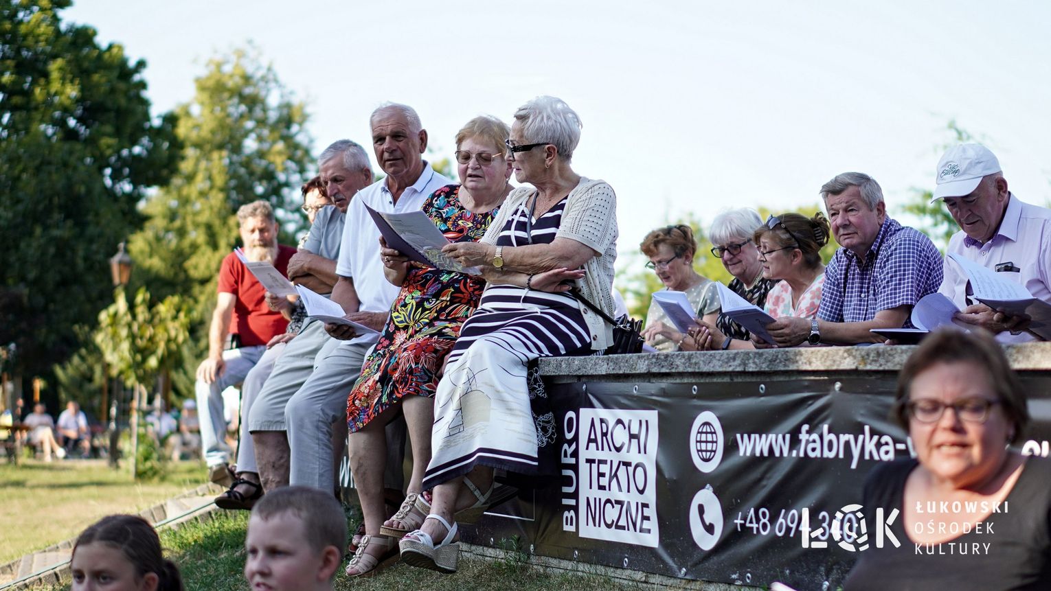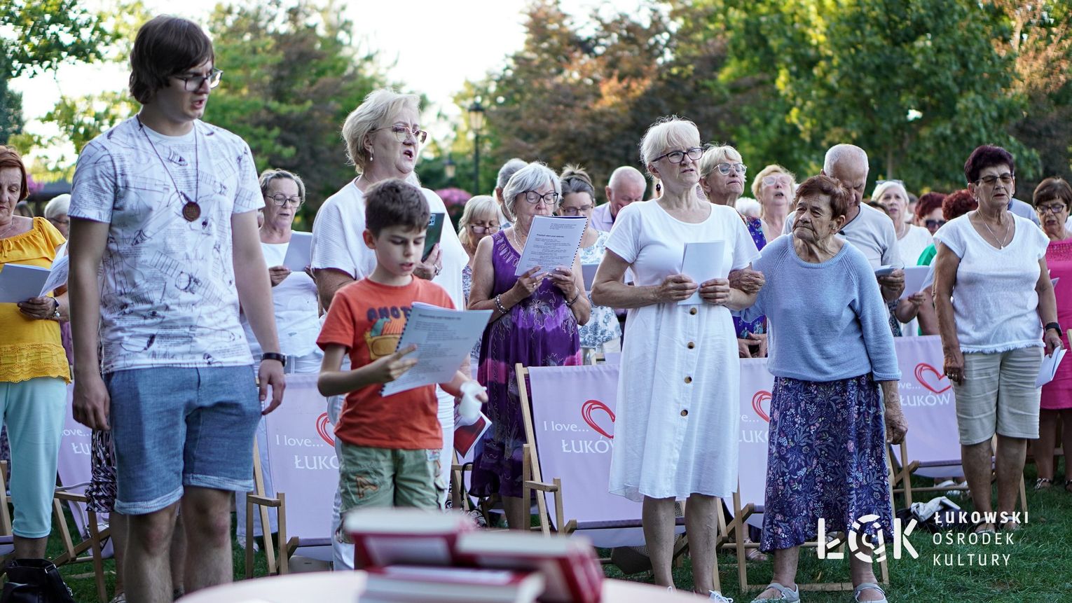 Jan Pospieszalski to ikona telewizji i estrady, której nie trzeba nikomu przestawiać. Artysta przyjechał specjalnie na nasze spotkanie, aby pośpiewać z licznym i rozentuzjazmowanym tłumem łukowian. Nasze wydarzenie odbyło się w parku miejskim, w kojącym tego upalnego dnia, cieniem drzew. Przy okazji zgromadzili się też wierni fani Pospieszalskiego, którzy wręcz nie chcieli wypuścić go do domu.