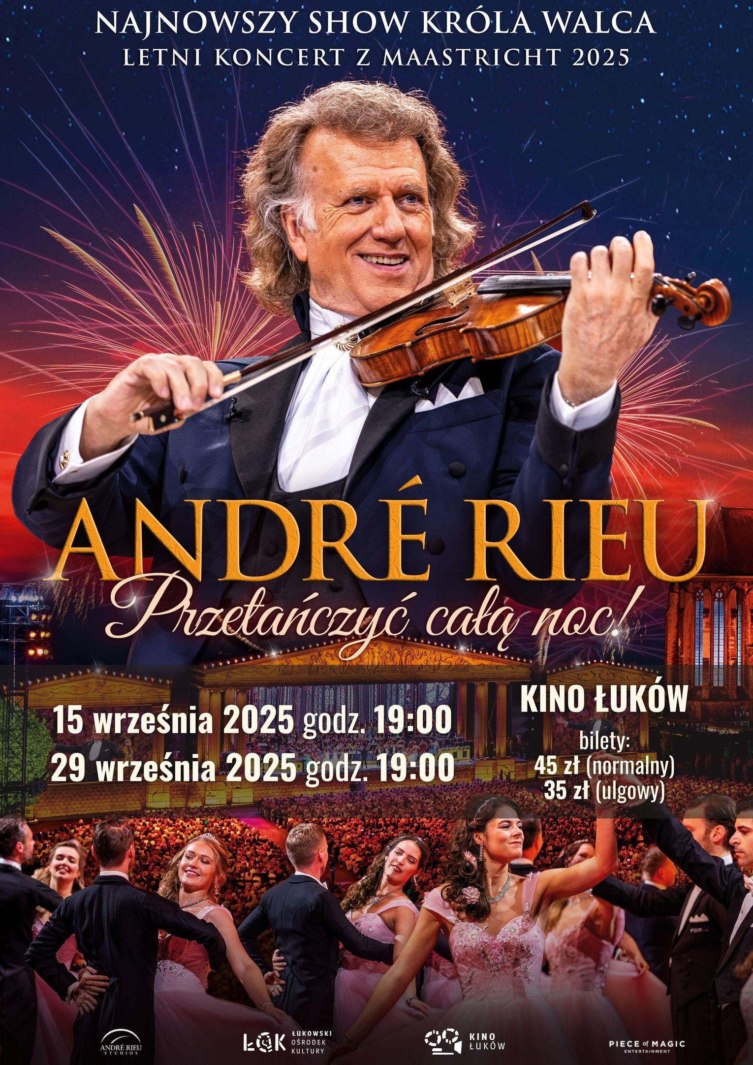 Wkrocz do łukowskiego kina tanecznym krokiem na najnowszy koncert maestra André Rieu! Poczuj się jak w rozświetloną tysiącami gwiazd letnią noc, pełną muzyki, miłości i wzruszeń! Baw się na całego podczas jeszcze większego, jeszcze piękniejszego i jeszcze bardziej urzekającego nowego show André Rieu z Maastricht!