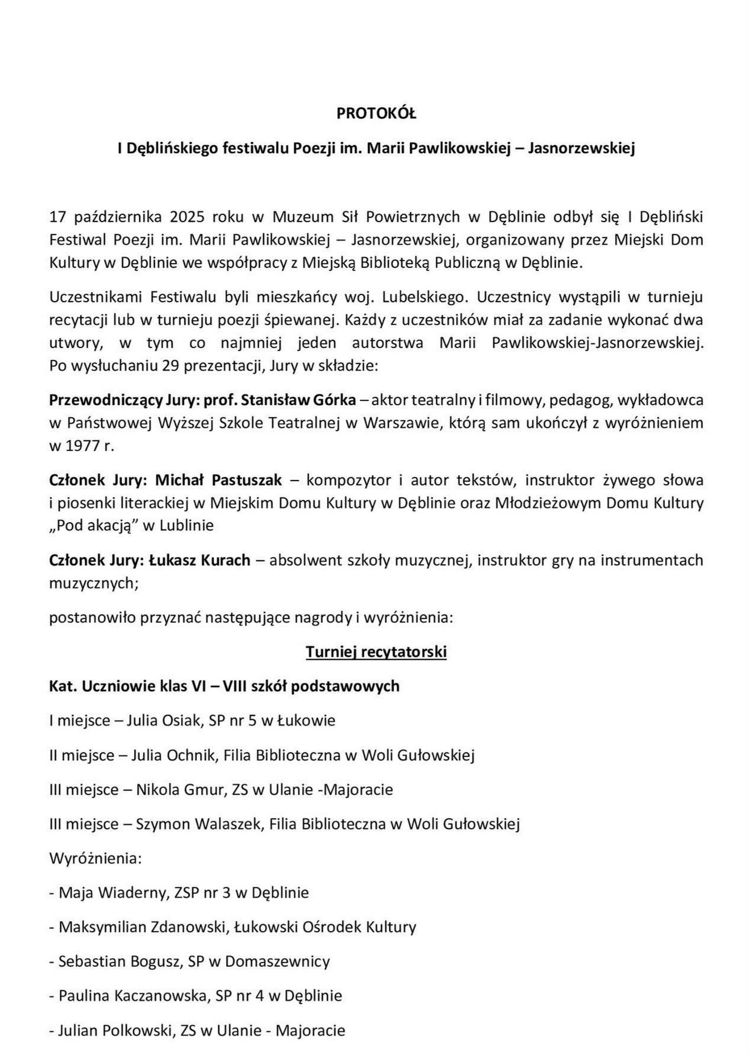 Gratulujemy recytatorom Łukowskiego Ośrodka Kultury, wszystkim nagrodzonym, uczestnikom i organizatorom Dęblińskiego Festiwalu Poezji!