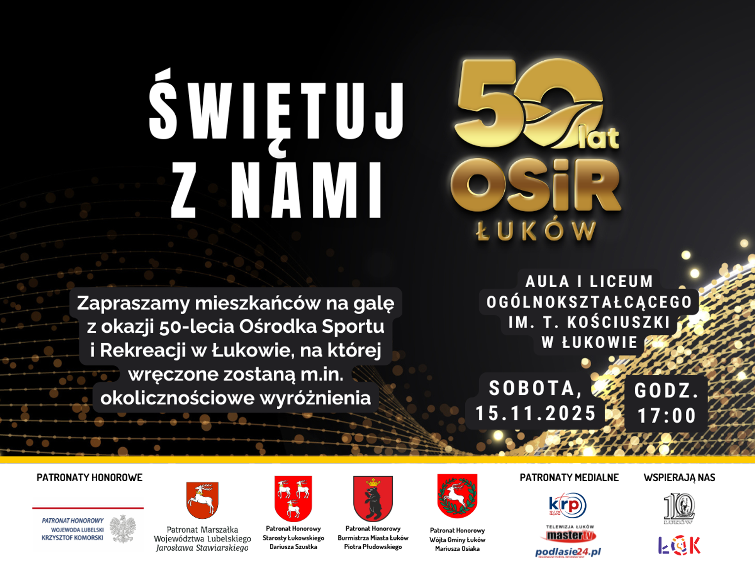Gala jubileuszowa będzie nie tylko okazją do podsumowań, ale również do spojrzenia w przyszłość - na nowe inicjatywy i kierunki rozwoju łukowskiego sportu. Jak zapowiadają organizatorzy, wieczór upłynie w wyjątkowej, pełnej emocji i sentymentu atmosferze. W wydarzeniu udział wezmą byli i obecni pracownicy OSiR, przedstawiciele władz samorządowych, lokalnych klubów sportowych oraz zaproszeni goście.