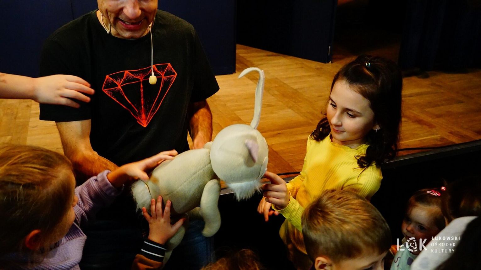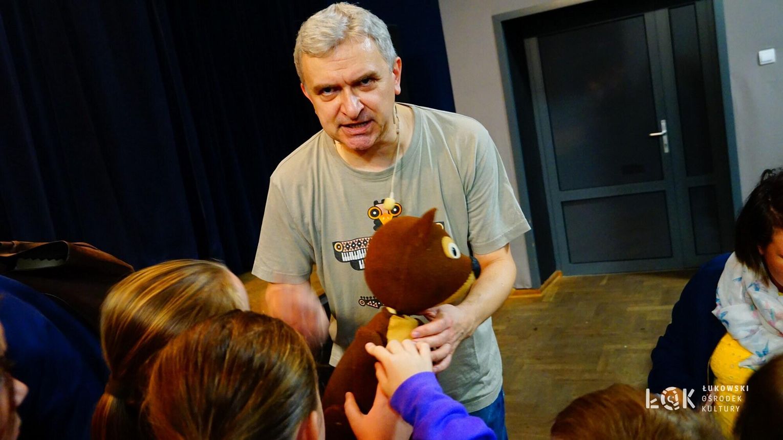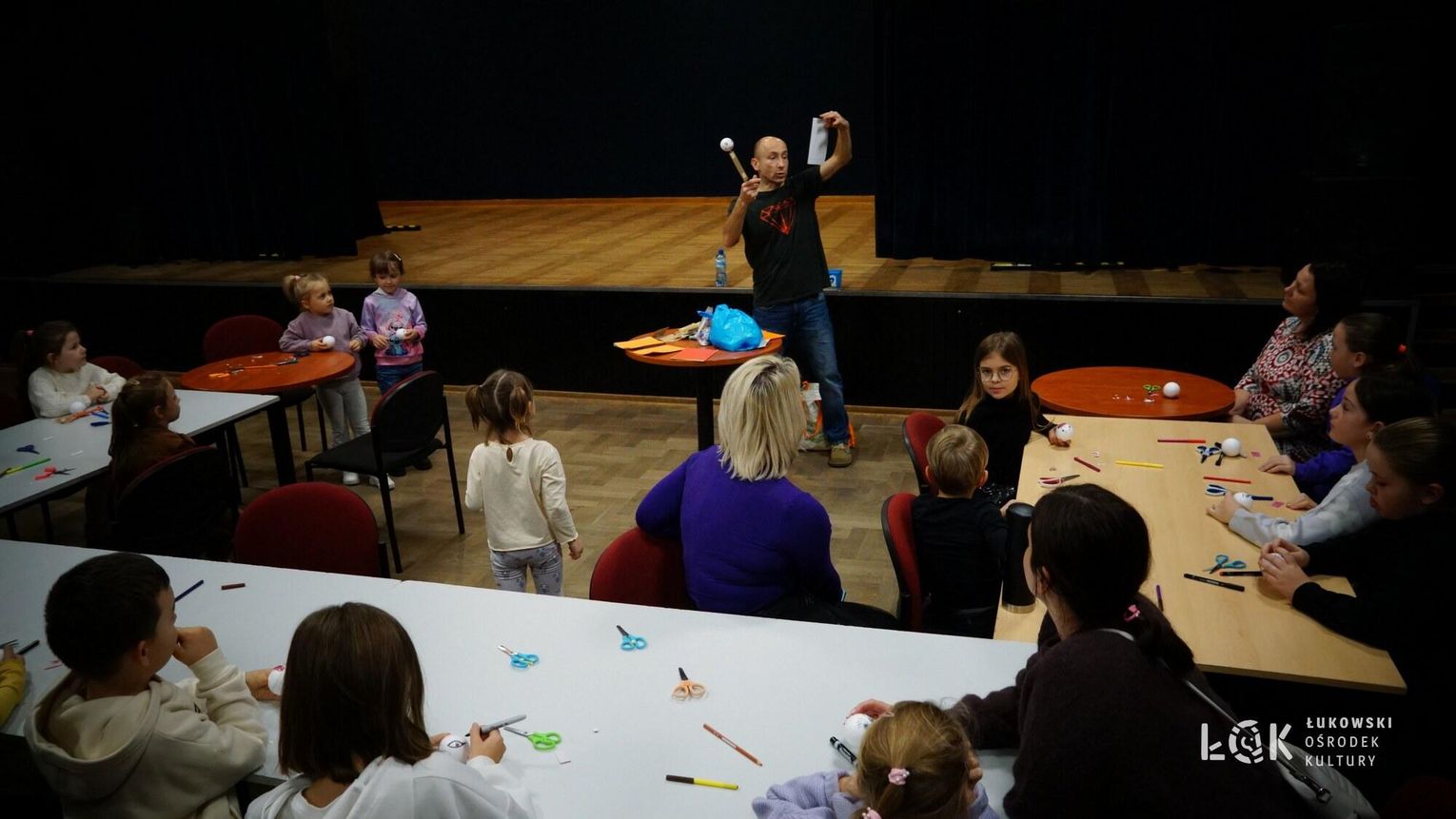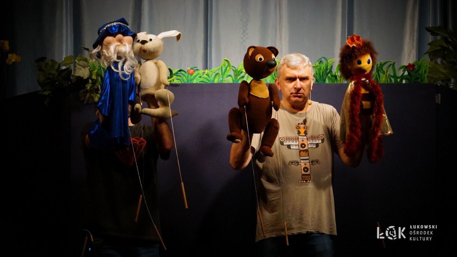 Tym razem najmłodsi widzowie obejrzeli pełen ciepła i humoru spektakl pt. „Magiczny miód” w wykonaniu Teatru Lalek Igraszka, a następnie wzięli udział w kreatywnych warsztatach budowy lalek teatralnych. Przedstawienie opowiadało o przygodach niedźwiadka Maciusia i jego przyjaciela, królika Kleofasa, którzy wyruszyli w daleką i pełną wyzwań podróż w poszukiwaniu magicznego miodu – jedynego lekarstwa dla ciężko chorej mamy niedźwiadka. Podczas wyprawy bohaterowie nie tylko przechytrzyli podstępnego węża Sobiesława, lecz także zdobyli zaufanie królowej pszczół, która podarowała im beczułkę niezwykłego miodu. Po spektaklu na dzieci czekały warsztaty teatralne, podczas których mogły własnoręcznie stworzyć swoje lalki, korzystając z wyobraźni i twórczej energii. Niedziela z teatrem w ŁOK ponownie okazała się doskonałą propozycją na rodzinne, kulturalne i magiczne popołudnie w Łukowskim Ośrodku Kultury!