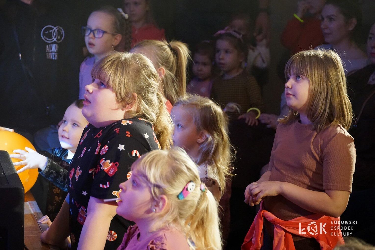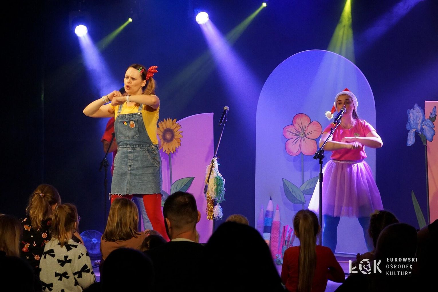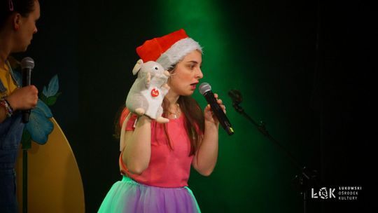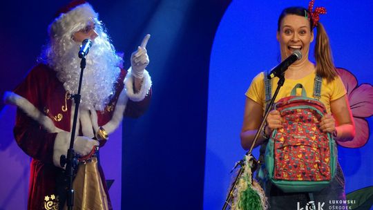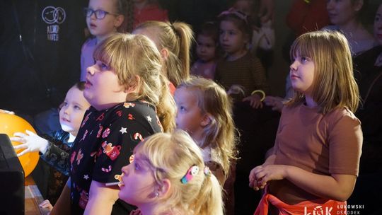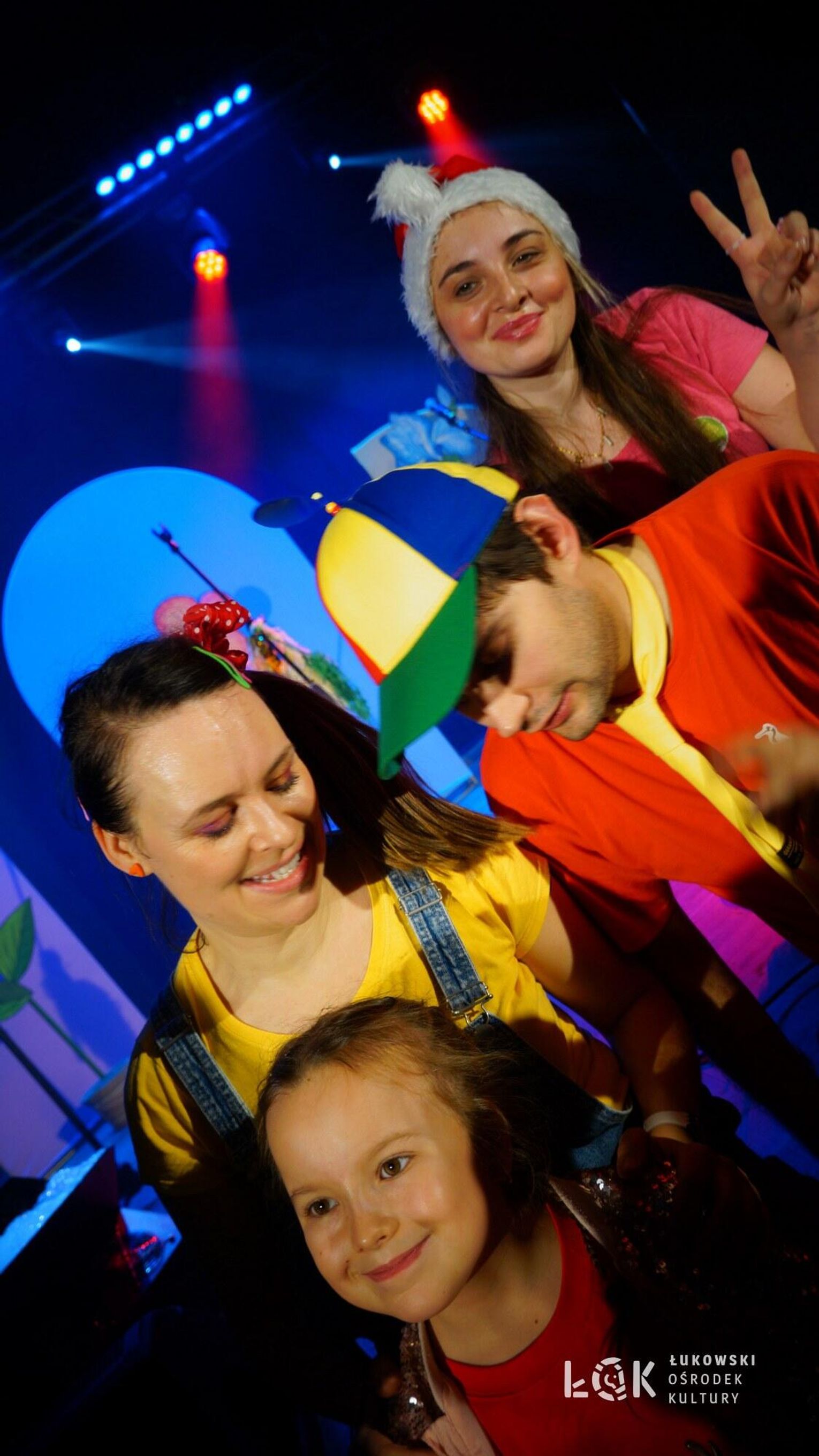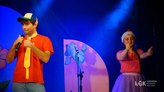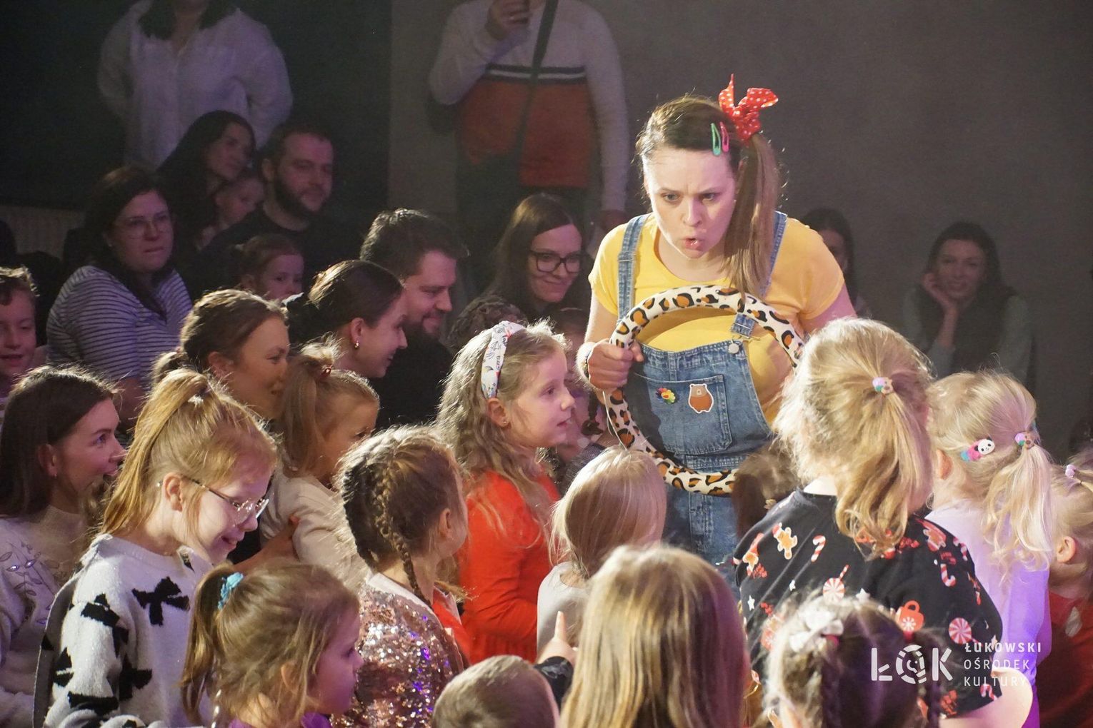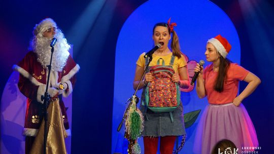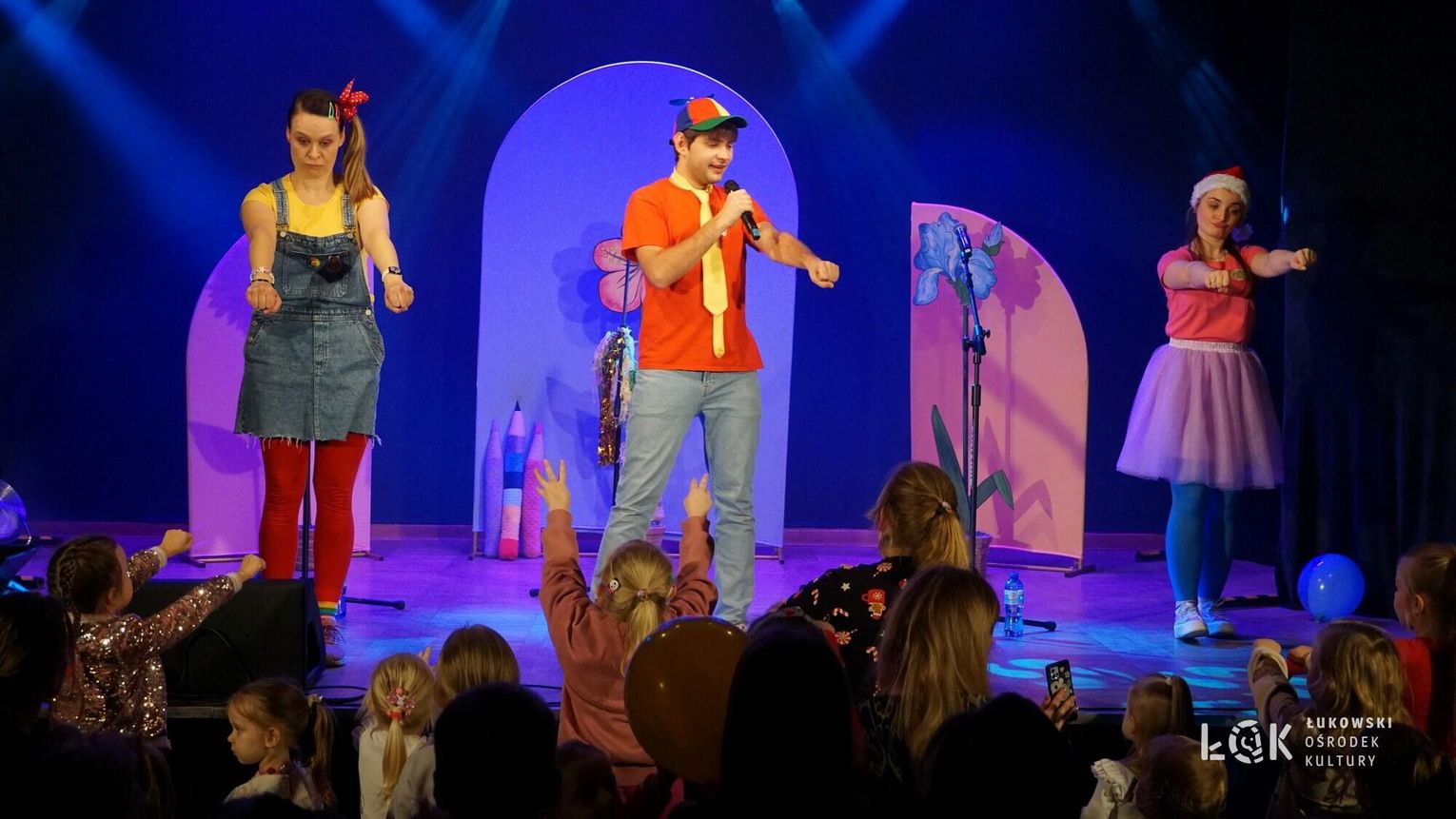 Karolina, Kasia i Mateusz porwali dzieci do krainy tańca, śmiechu i czarów. Mali uczestnicy przez pełną godzinę tańczyli i śpiewali wraz z artystami do swoich ulubionych piosenek, jak „Idziemy przez dżunglę”, „Ciała kształt”, „Tańce Połamańce”, „Kubeczek”, „Rozbawiony tydzień” i wiele innych hitów, które wprowadziły prawdziwie bajkową atmosferę. Co chwilę pojawiały się też animacje, magiczne sztuczki, serpentyny i bańki mydlane, które wywoływały szerokie uśmiechy i okrzyki zachwytu. Odwiedził nas też Święty Mikołaj! Była to kolejna odsłona „Niedzieli z teatrem”, która po raz kolejny udowodniła, że kultura potrafi przenosić dzieci i dorosłych do świata pełnego fantazji. Tego dnia Łukowski Ośrodek Kultury wypełnił się radością, tańcem i atmosferą mikołajkowej przygody, a zespół Spoko Loko pozostawił za sobą ślad tak kolorowy, bajkowy, radosny i świetlisty, jakby przez ŁOK przeszła kolorowa gwiezdna kometa.