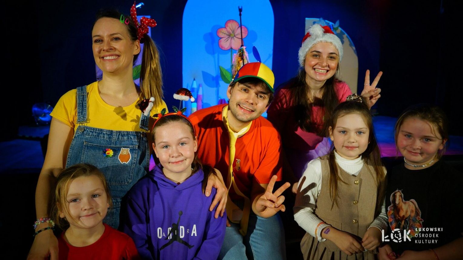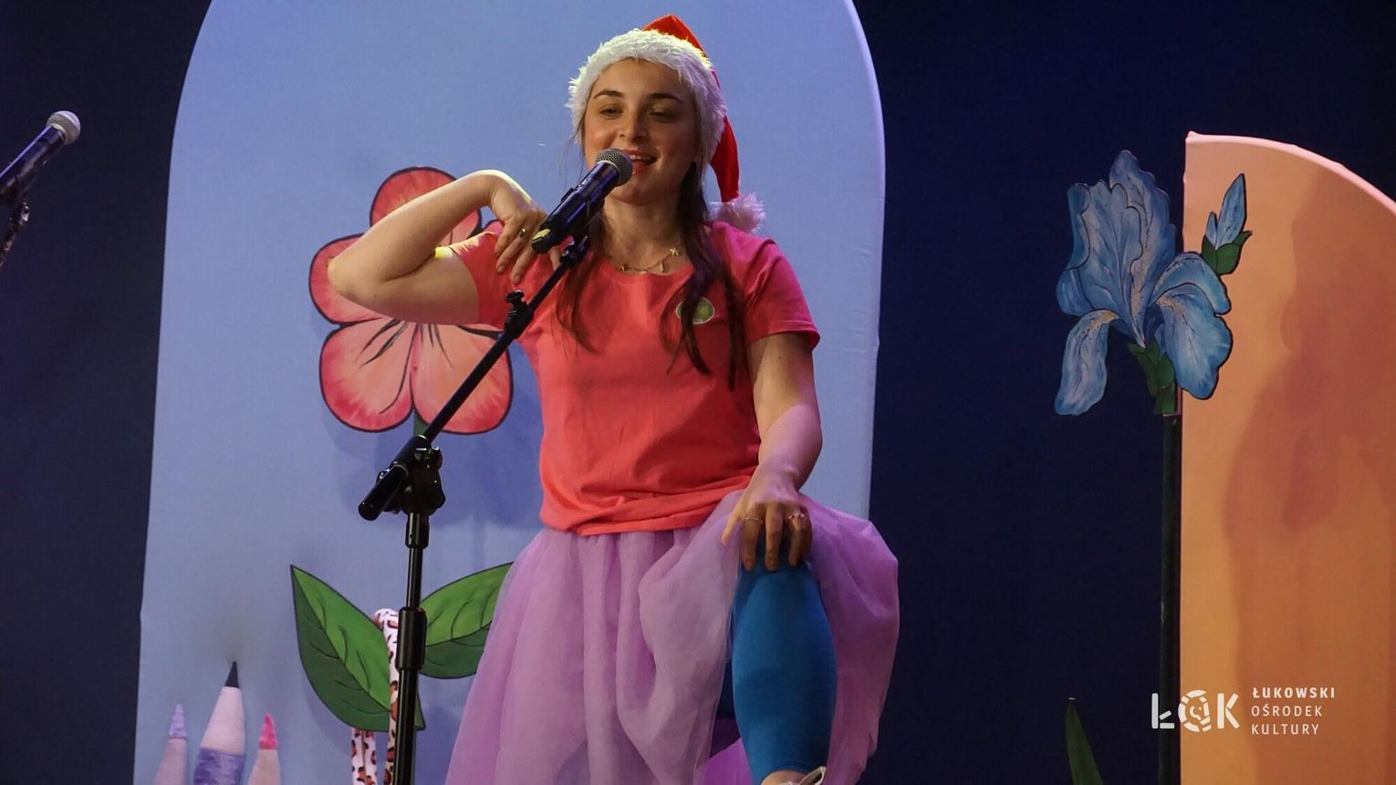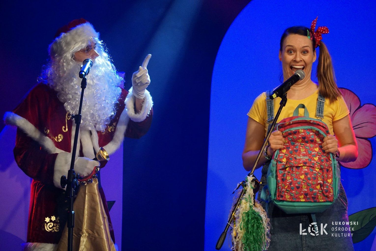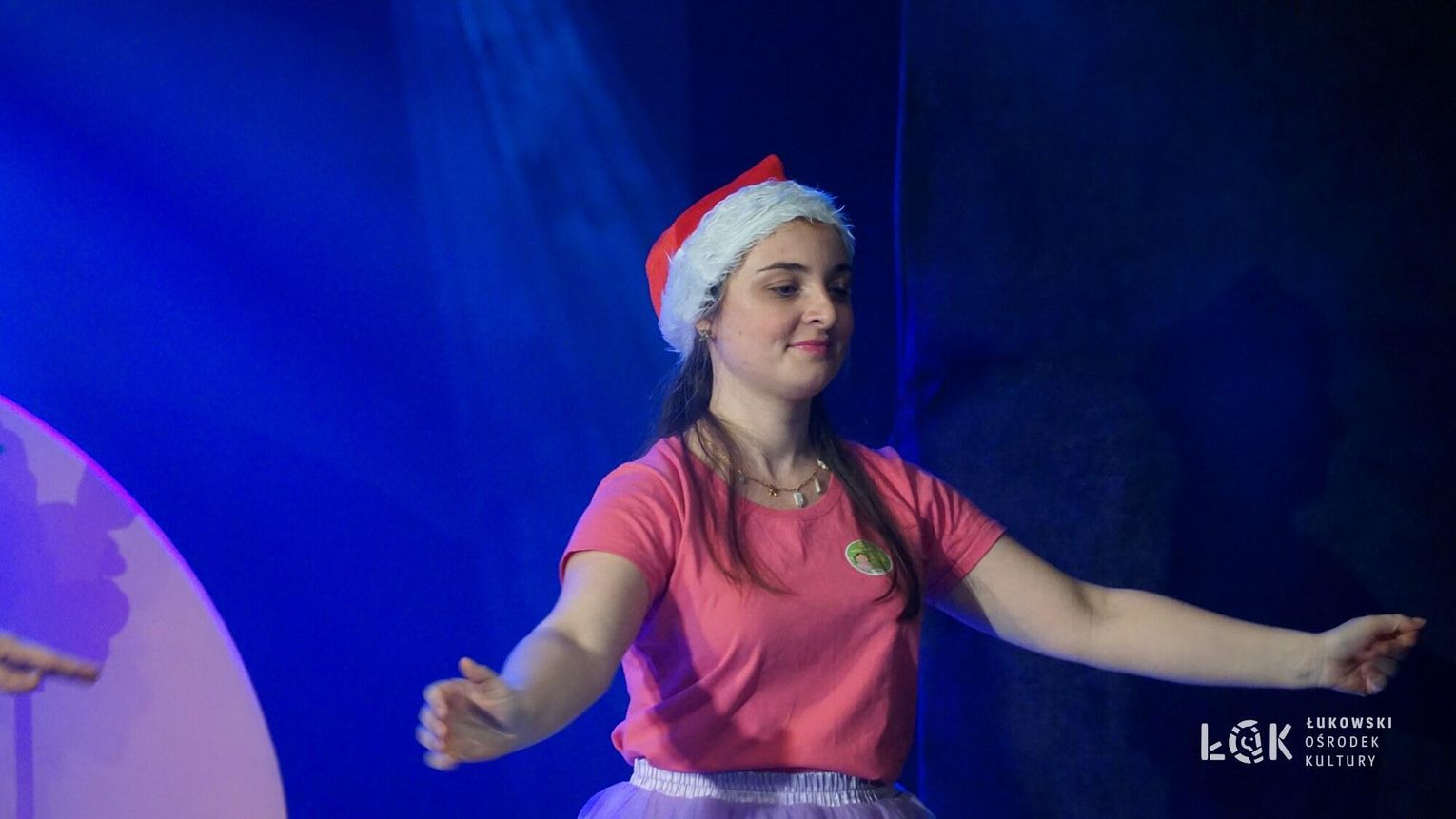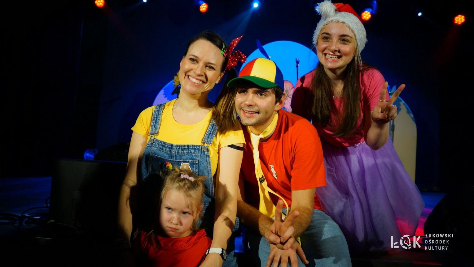 Karolina, Kasia i Mateusz porwali dzieci do krainy tańca, śmiechu i czarów. Mali uczestnicy przez pełną godzinę tańczyli i śpiewali wraz z artystami do swoich ulubionych piosenek, jak „Idziemy przez dżunglę”, „Ciała kształt”, „Tańce Połamańce”, „Kubeczek”, „Rozbawiony tydzień” i wiele innych hitów, które wprowadziły prawdziwie bajkową atmosferę. Co chwilę pojawiały się też animacje, magiczne sztuczki, serpentyny i bańki mydlane, które wywoływały szerokie uśmiechy i okrzyki zachwytu. Odwiedził nas też Święty Mikołaj! Była to kolejna odsłona „Niedzieli z teatrem”, która po raz kolejny udowodniła, że kultura potrafi przenosić dzieci i dorosłych do świata pełnego fantazji. Tego dnia Łukowski Ośrodek Kultury wypełnił się radością, tańcem i atmosferą mikołajkowej przygody, a zespół Spoko Loko pozostawił za sobą ślad tak kolorowy, bajkowy, radosny i świetlisty, jakby przez ŁOK przeszła kolorowa gwiezdna kometa.