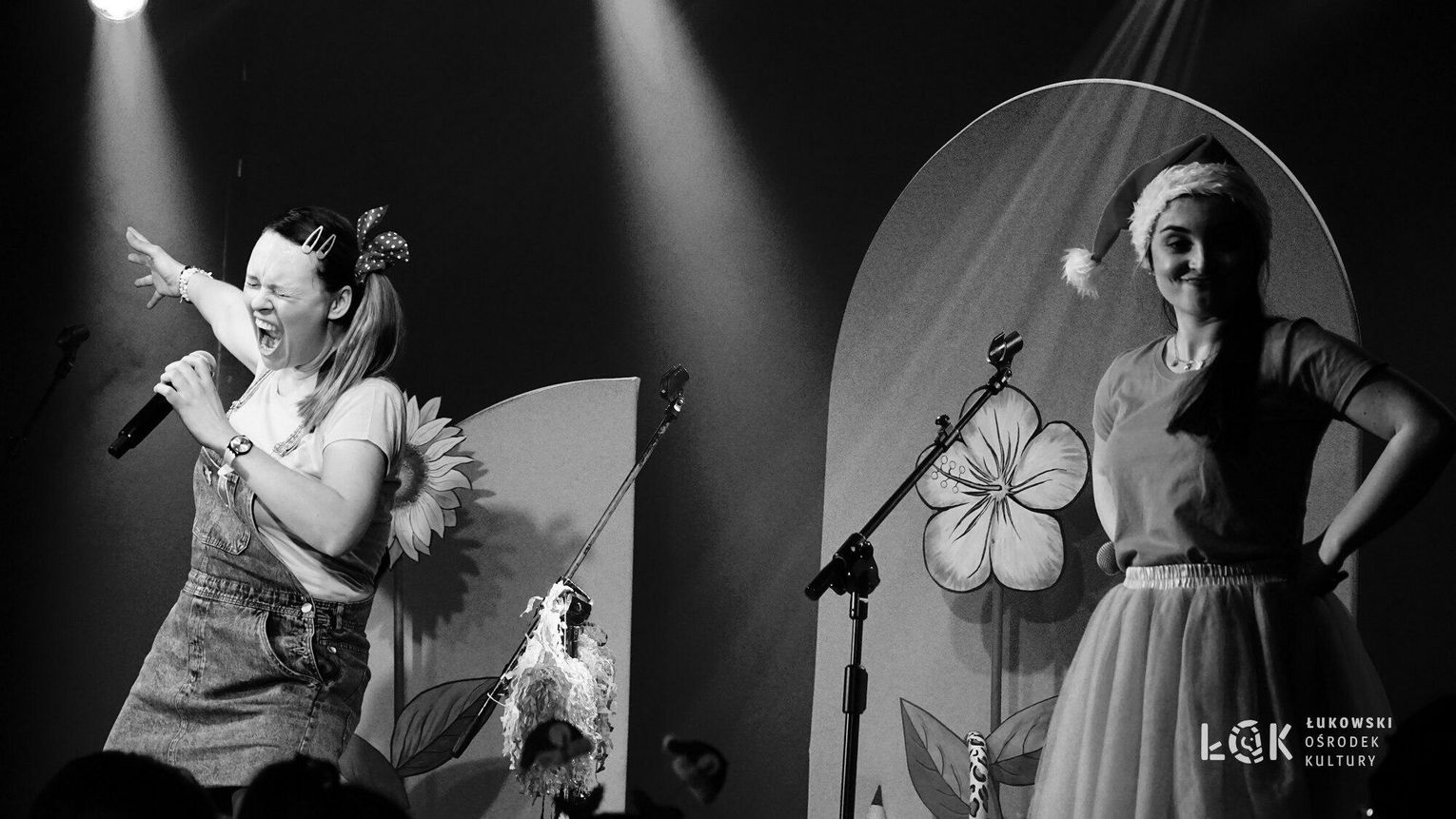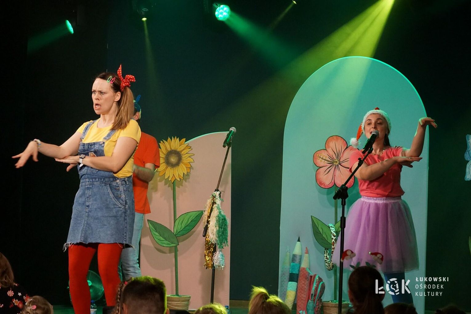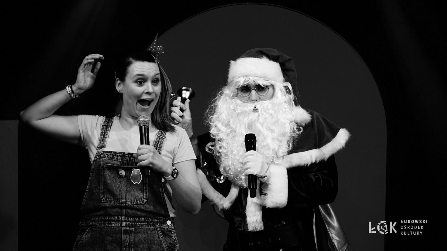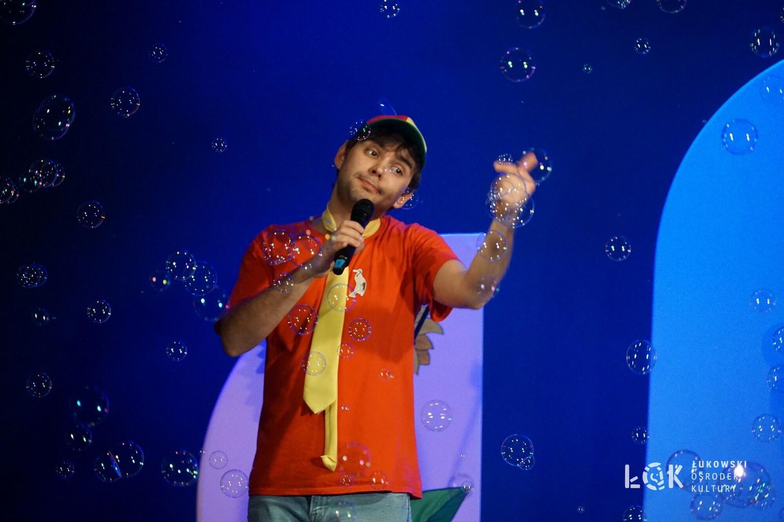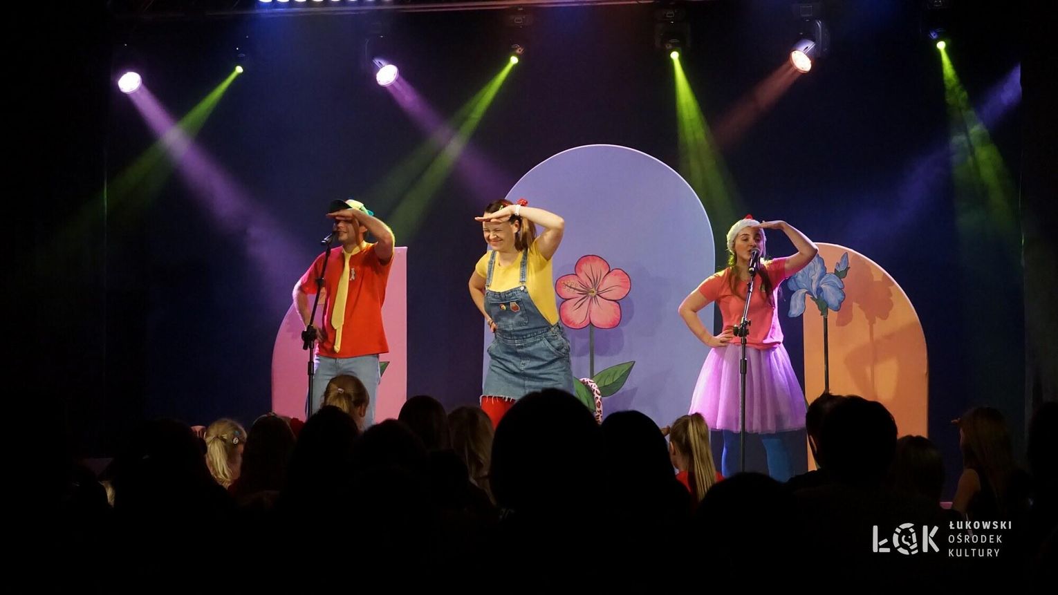 Karolina, Kasia i Mateusz porwali dzieci do krainy tańca, śmiechu i czarów. Mali uczestnicy przez pełną godzinę tańczyli i śpiewali wraz z artystami do swoich ulubionych piosenek, jak „Idziemy przez dżunglę”, „Ciała kształt”, „Tańce Połamańce”, „Kubeczek”, „Rozbawiony tydzień” i wiele innych hitów, które wprowadziły prawdziwie bajkową atmosferę. Co chwilę pojawiały się też animacje, magiczne sztuczki, serpentyny i bańki mydlane, które wywoływały szerokie uśmiechy i okrzyki zachwytu. Odwiedził nas też Święty Mikołaj! Była to kolejna odsłona „Niedzieli z teatrem”, która po raz kolejny udowodniła, że kultura potrafi przenosić dzieci i dorosłych do świata pełnego fantazji. Tego dnia Łukowski Ośrodek Kultury wypełnił się radością, tańcem i atmosferą mikołajkowej przygody, a zespół Spoko Loko pozostawił za sobą ślad tak kolorowy, bajkowy, radosny i świetlisty, jakby przez ŁOK przeszła kolorowa gwiezdna kometa.