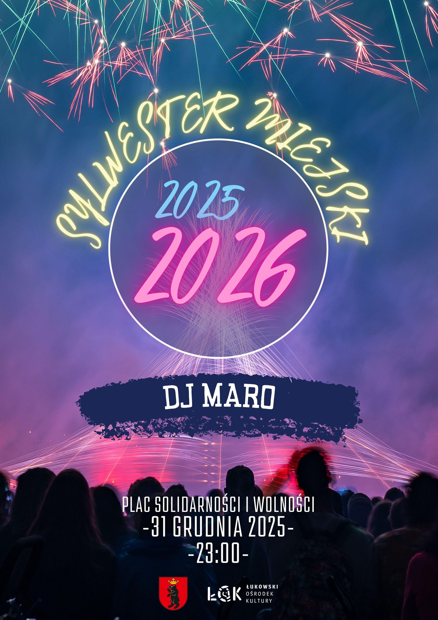 Przywitajmy nadchodzący, nowy – 2026 rok wspólnie. Spotkajmy się na placu Solidarności i Wolności w sylwestrową noc. Naszą imprezę rozpoczynamy o 23:00, a dobrą, taneczną zabawę zapewni Dj Maro.