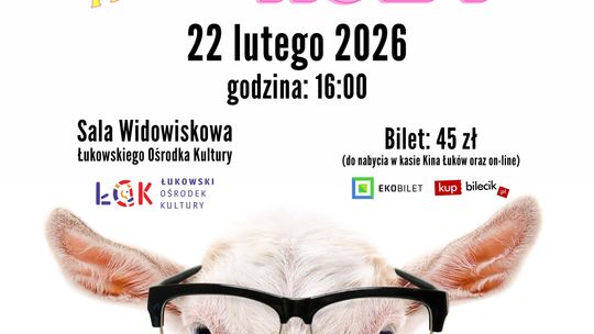 Bilety na spektakl teatralny „Kłamstwa kozy” oraz zabawę noworoczną w cenie 45 zł do nabycia są w kasie Kina Łuków oraz online na stronach ekobilet.pl i kupbilecik.pl
