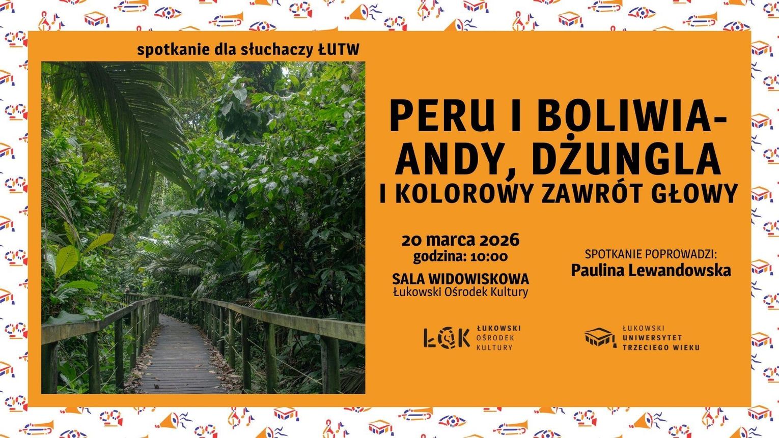 Zapraszamy słuchaczy Łukowskiego Uniwersytetu Trzeciego Wieku na spotkanie podróżnicze pn. "Peru i Boliwia - Andy, dżungla i kolorowy zawrót głowy".