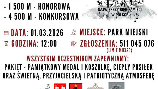 Ruszyły właśnie zapisy! Ten największy bieg pamięci w Polsce odbędzie się w niedzielę 1 marca 2026r. o godzinie 12:00 w Parku Miejskim w Łukowie.