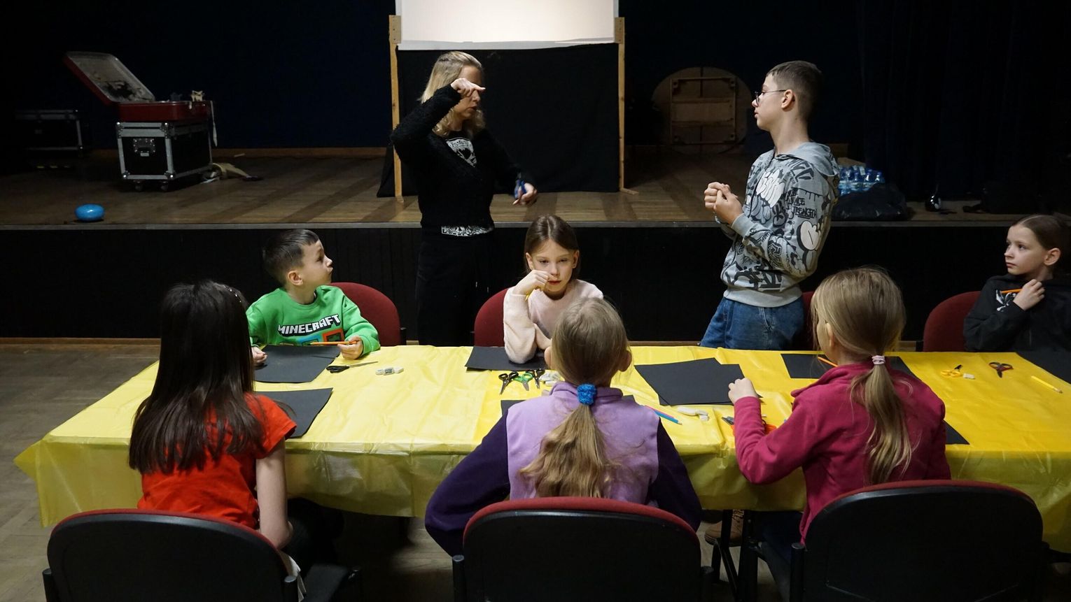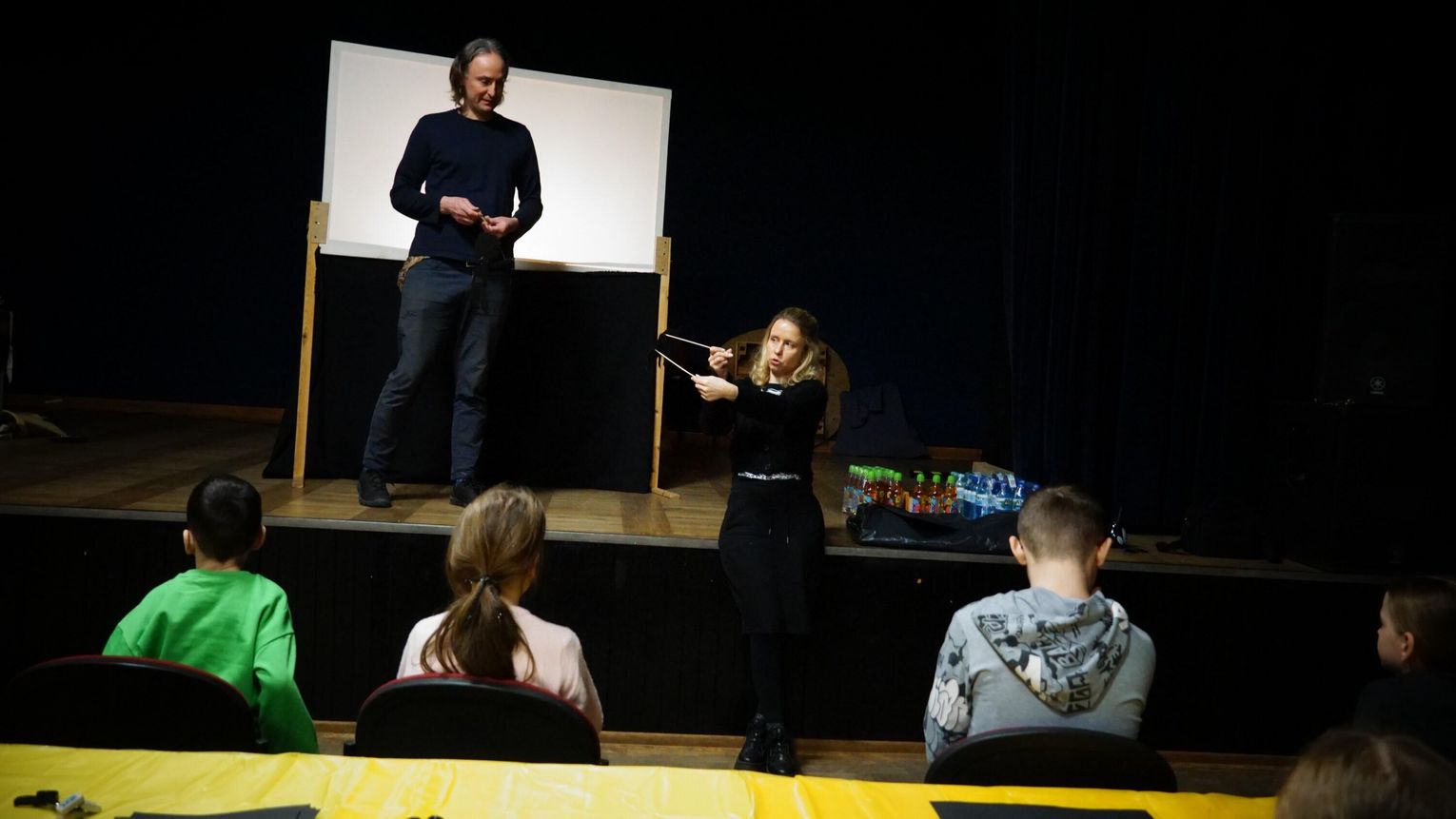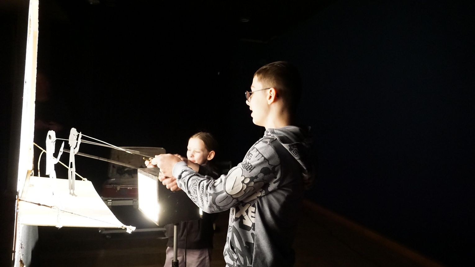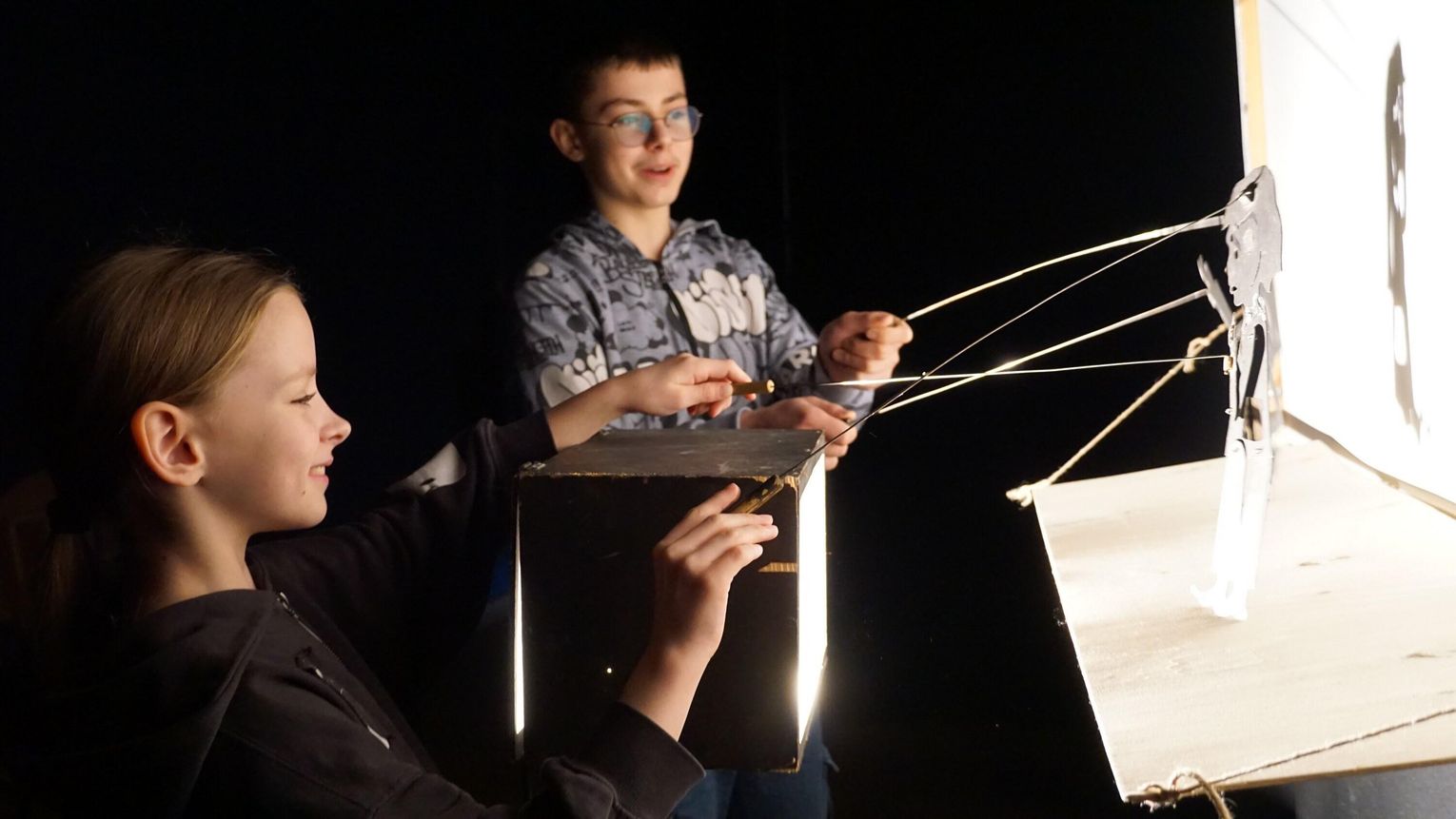 Warsztaty Teatru Cieni poprowadził Teatr NEMNO z Rzeszowa: malarka i scenografka Dagmara Jemioła-Hryniewicka oraz aktor i reżyser Henryk Hryniewicki. W trakcie zajęć uczestnicy poznali podstawowe elementy teatru cieni, dowiedzieli się, jak działa światło i w jaki sposób można je twórczo wykorzystać.