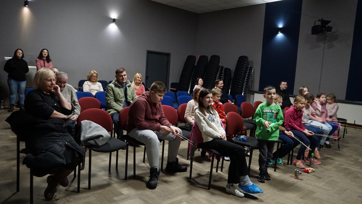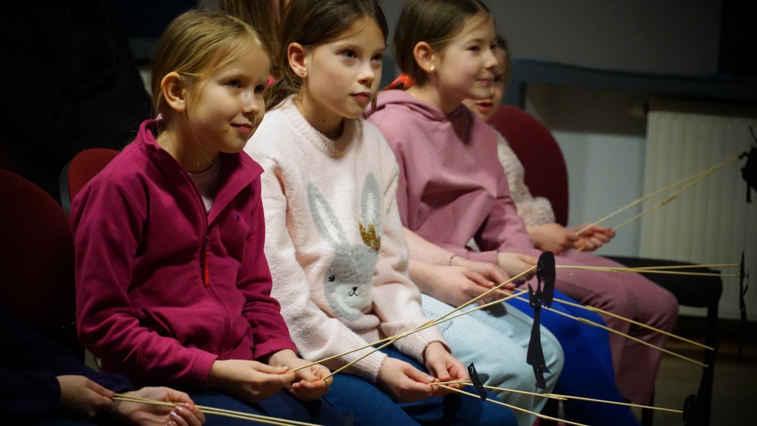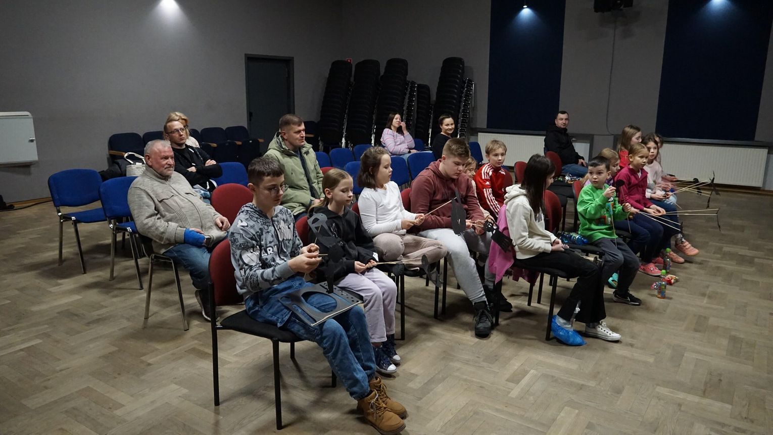 Zaprezentowane zostały różne rodzaje lalek cieniowych, a następnie każdy wykonał własną lalkę. Pod okiem instruktorów uczestnicy nauczyli się podstaw animacji oraz odkryli możliwości jakie daje lalka cieniowa. Efektem twórczych zajęć były odegrane przez dzieci krótkie etiudy teatralne, które zaprezentowali swoim rodzicom. Na zakończenie spotkania dzieci obejrzały spektakl „Czerwony kapturek” w wykonaniu Teatru Nemno. To był bardzo ciekawy, wartościowy i twórczo spędzony czas. Kreatywności dzieciom nie można odmówić!