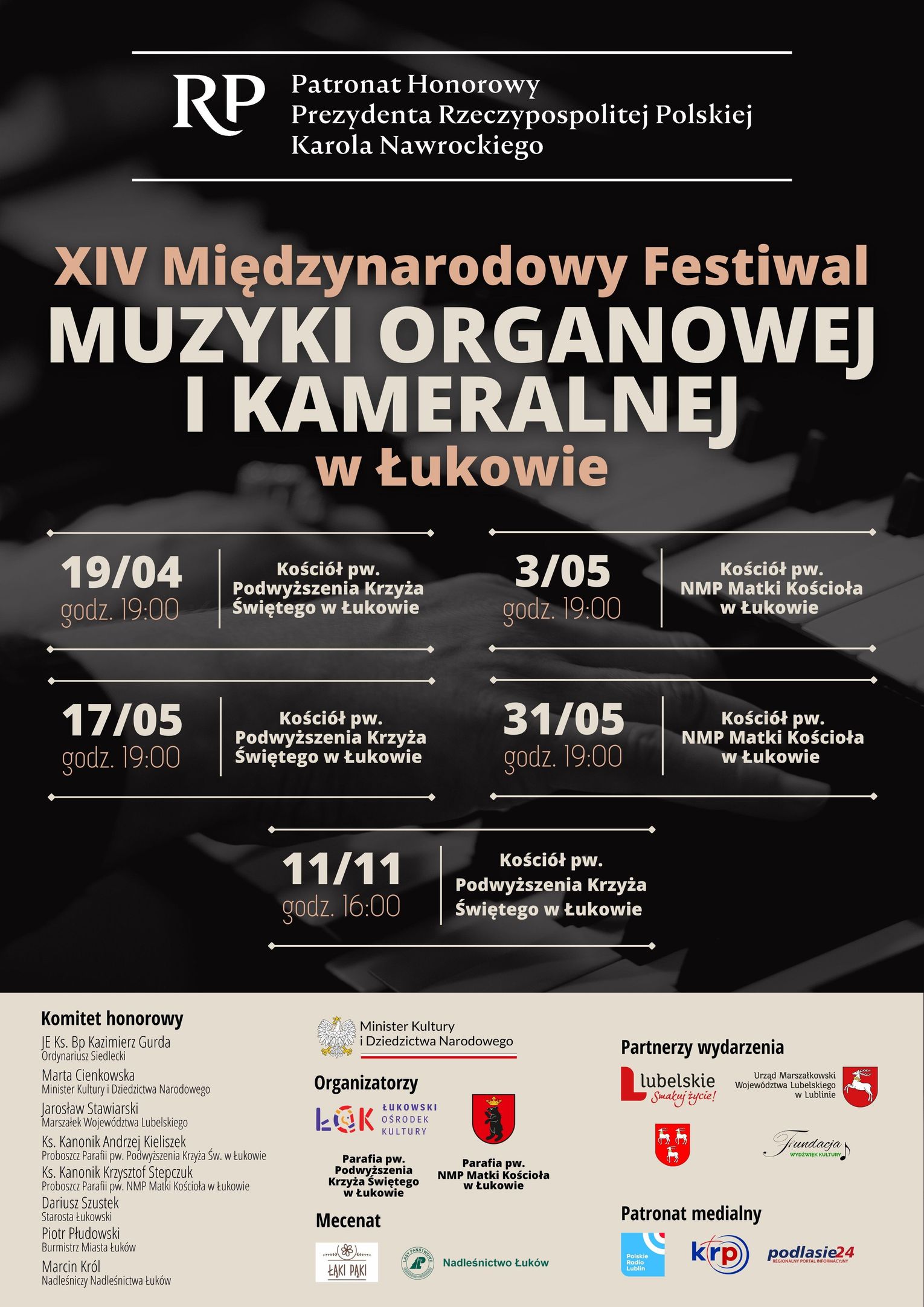 Patronat Honorowy nad XIV Międzynarodowym Festiwalem Muzyki Organowej i Kameralnej w Łukowie objął Prezydent Rzeczypospolitej Polskiej Karol Nawrocki.