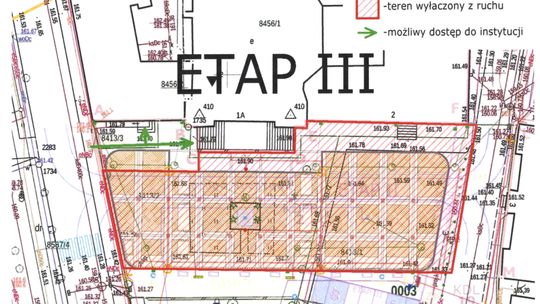 Docelowo, w trzecim etapie prac, zakres wyłączeń zostanie jeszcze rozszerzony. W tym czasie nie będzie już możliwe korzystanie z parkingu przy ul. Kościelnej, choć dojścia do budynków nadal będą utrzymane. Termin realizacji tego etapu nie został jeszcze ostatecznie określony.