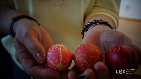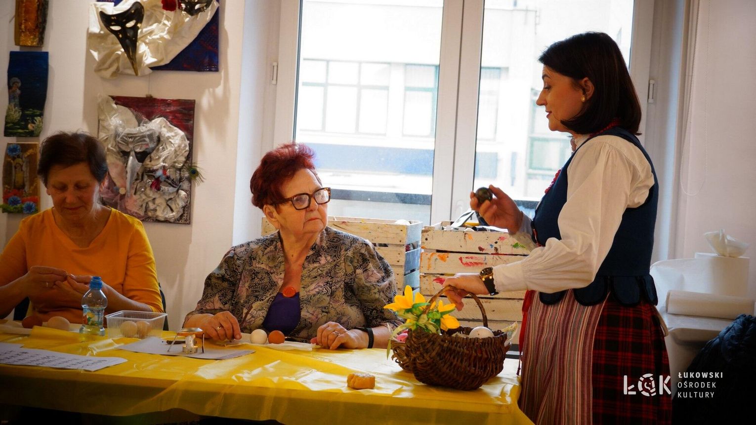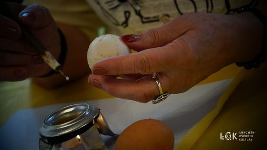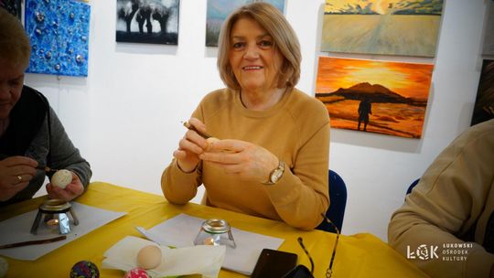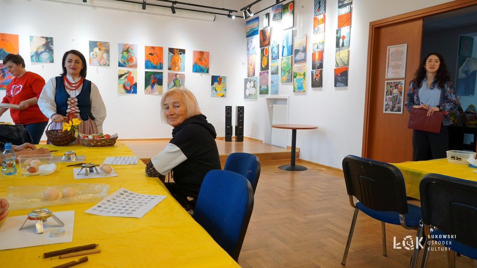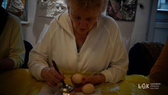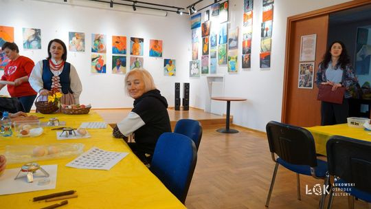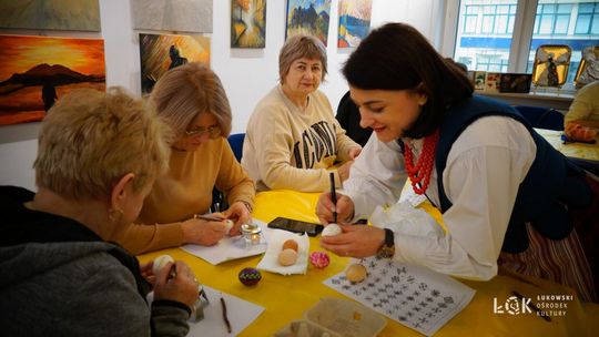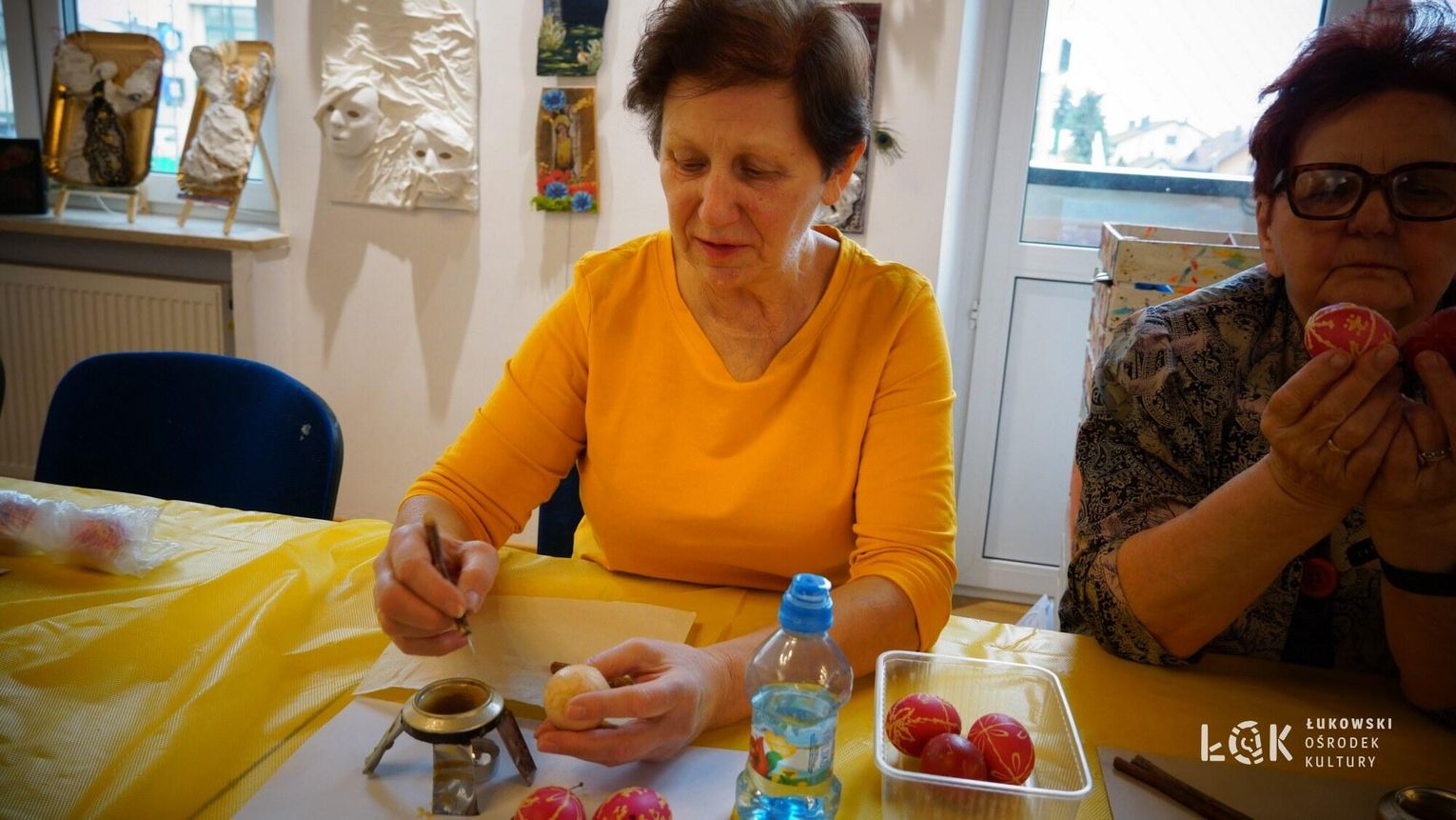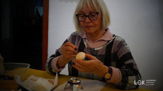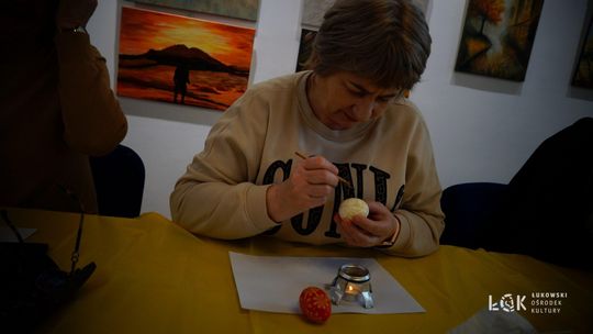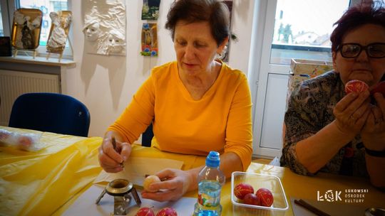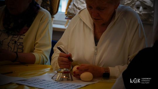 Podczas wydarzenia miały okazję poznać lub poćwiczyć tradycyjną metodę zdobienia jaj – technikę batikową. Warsztaty poprowadziła Edyta Sak – twórczyni ludowa związana z Muzeum Ziemi Łukowskiej im. Longina Kowalczyka, która z pasją i zaangażowaniem wprowadziła uczestniczki w tajniki zdobienia pisanek przy użyciu wosku i barwników. W trakcie zajęć panie krok po kroku poznawały kolejne etapy pracy – od przygotowania jaj, poprzez nanoszenie wzorów, aż po ich barwienie. Podczas warsztatów powstały piękne pisanki, które będą zdobić koszyczki tradycyjnie przygotowywane na święconkę. Wydarzenie było także okazją do wspominania dawnych zwyczajów wielkanocnych, panujących w domach uczestniczek wydarzenia.