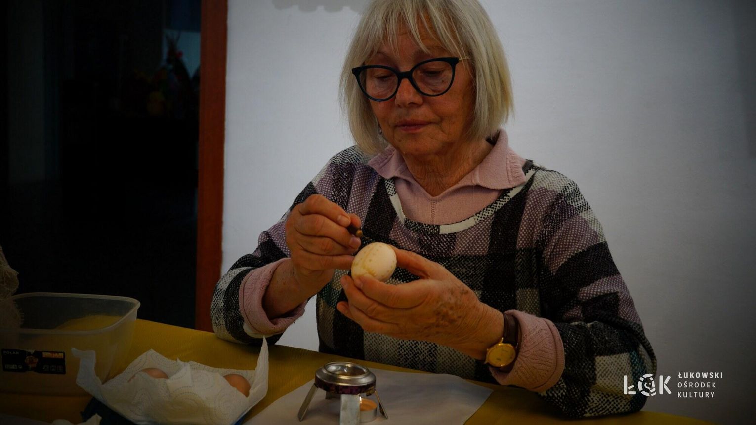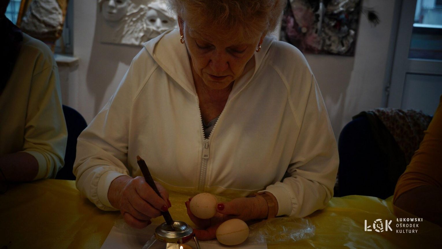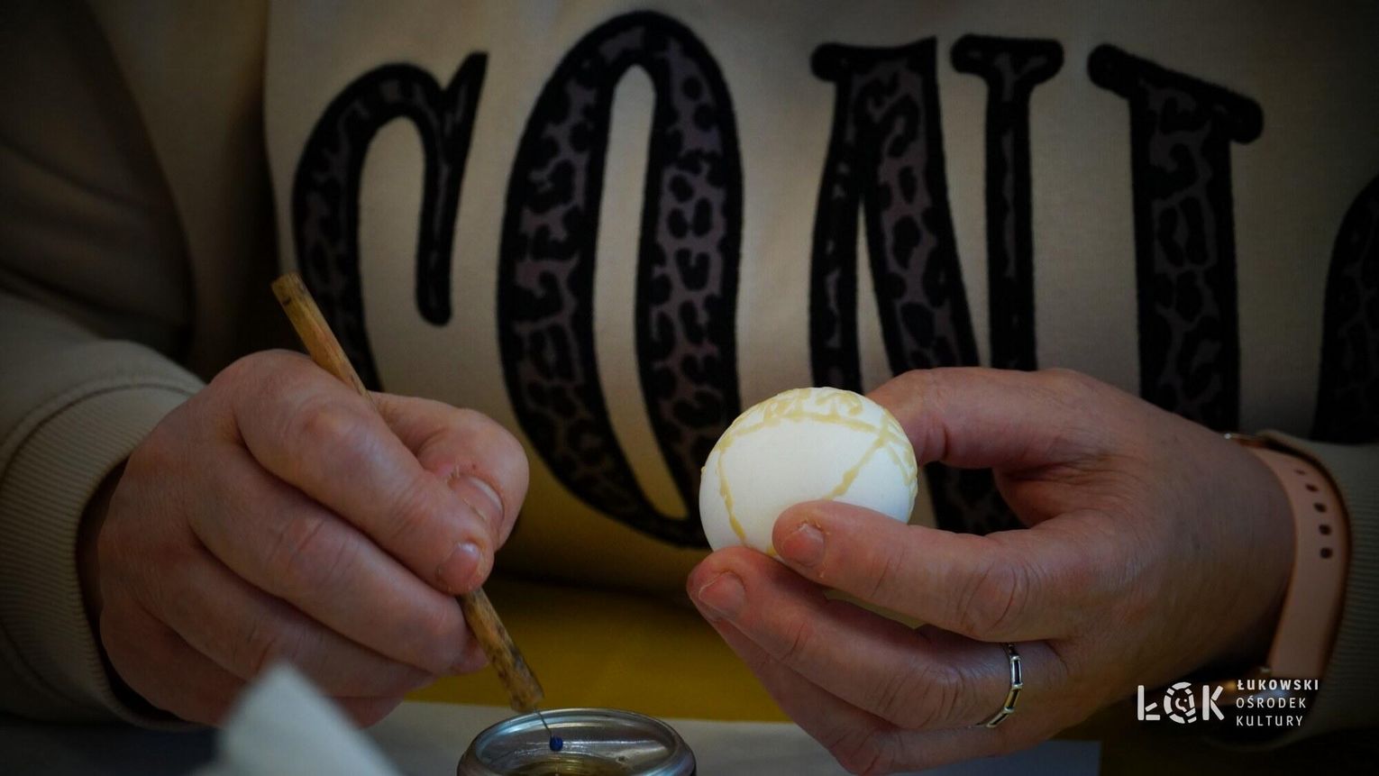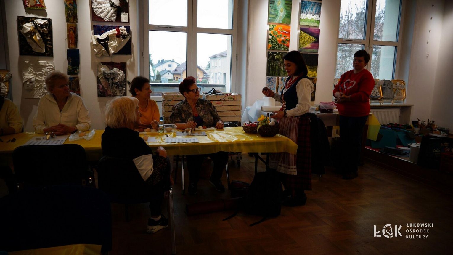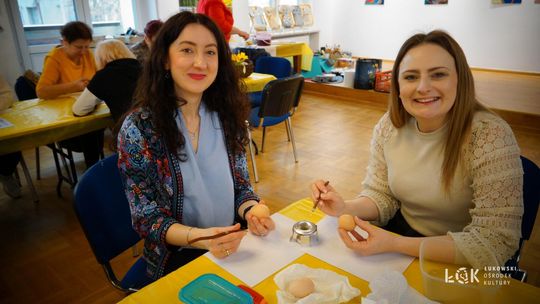 Podczas wydarzenia miały okazję poznać lub poćwiczyć tradycyjną metodę zdobienia jaj – technikę batikową. Warsztaty poprowadziła Edyta Sak – twórczyni ludowa związana z Muzeum Ziemi Łukowskiej im. Longina Kowalczyka, która z pasją i zaangażowaniem wprowadziła uczestniczki w tajniki zdobienia pisanek przy użyciu wosku i barwników. W trakcie zajęć panie krok po kroku poznawały kolejne etapy pracy – od przygotowania jaj, poprzez nanoszenie wzorów, aż po ich barwienie. Podczas warsztatów powstały piękne pisanki, które będą zdobić koszyczki tradycyjnie przygotowywane na święconkę. Wydarzenie było także okazją do wspominania dawnych zwyczajów wielkanocnych, panujących w domach uczestniczek wydarzenia.