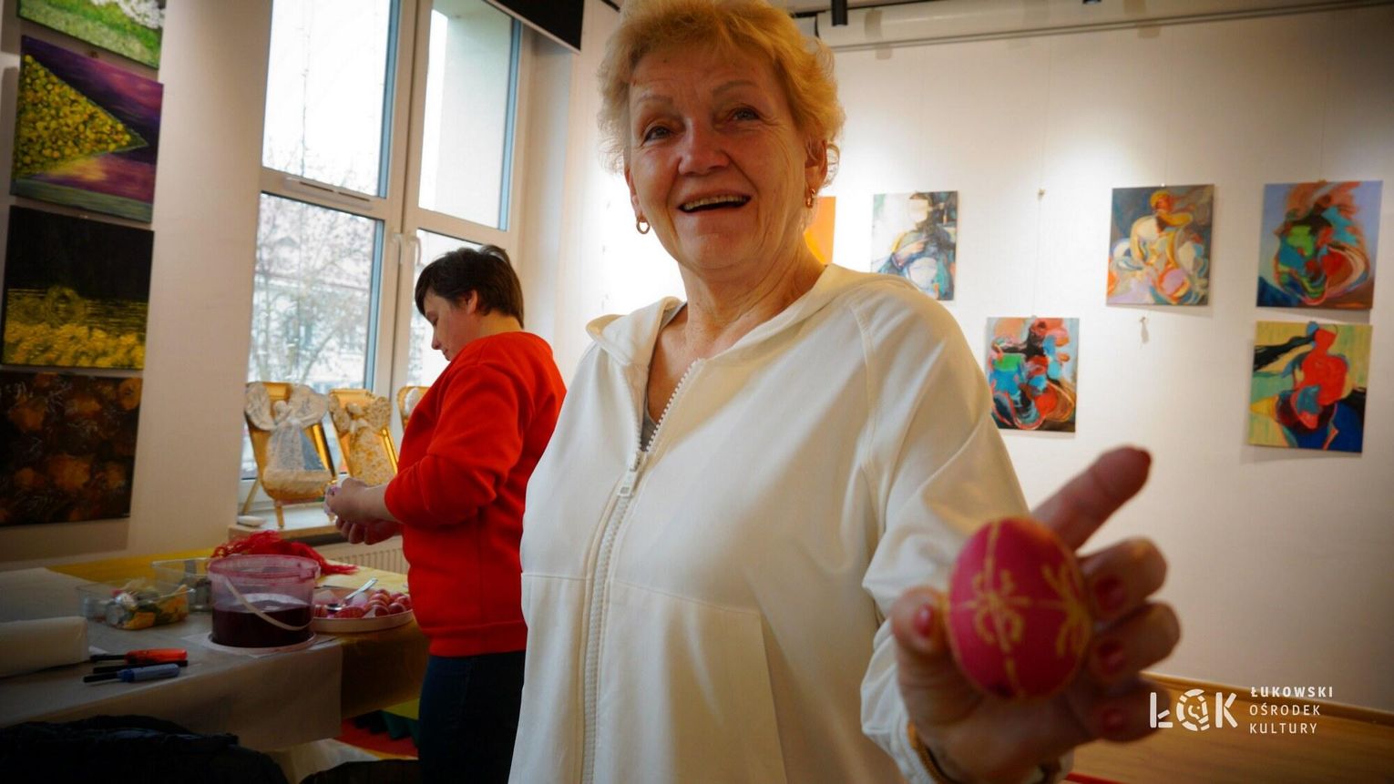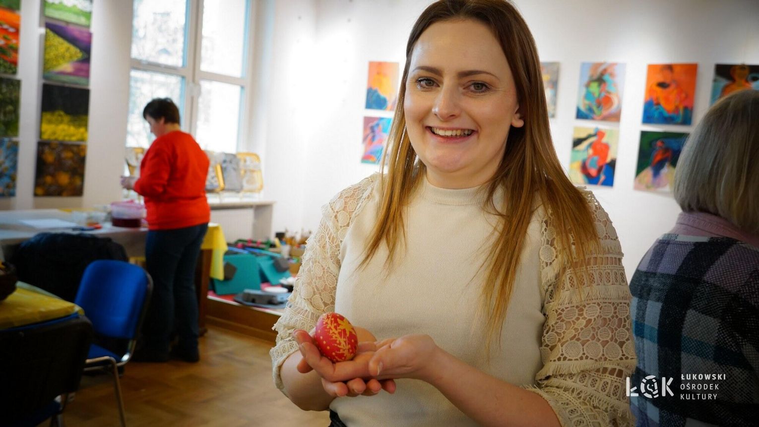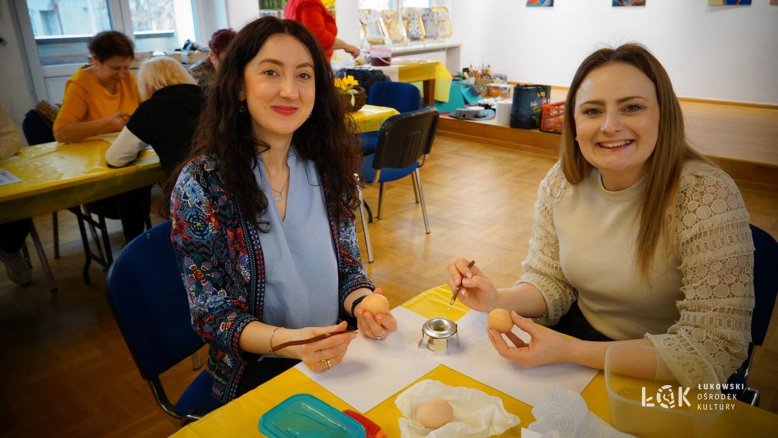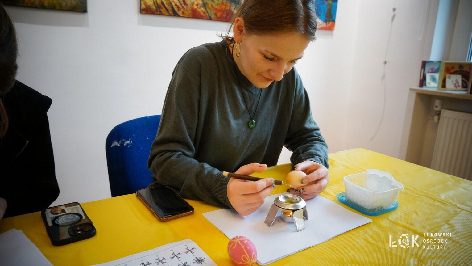 Podczas wydarzenia miały okazję poznać lub poćwiczyć tradycyjną metodę zdobienia jaj – technikę batikową. Warsztaty poprowadziła Edyta Sak – twórczyni ludowa związana z Muzeum Ziemi Łukowskiej im. Longina Kowalczyka, która z pasją i zaangażowaniem wprowadziła uczestniczki w tajniki zdobienia pisanek przy użyciu wosku i barwników. W trakcie zajęć panie krok po kroku poznawały kolejne etapy pracy – od przygotowania jaj, poprzez nanoszenie wzorów, aż po ich barwienie. Podczas warsztatów powstały piękne pisanki, które będą zdobić koszyczki tradycyjnie przygotowywane na święconkę. Wydarzenie było także okazją do wspominania dawnych zwyczajów wielkanocnych, panujących w domach uczestniczek wydarzenia.