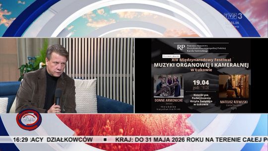 Widzowie mieli możliwość usłyszeć o Międzynarodowym Festiwalu Muzyki Organowej i Kameralnej w Łukowie. Wydarzenie od lat wzbogaca życie kulturalne Województwa Lubelskiego oraz popularyzuje muzykę sakralną i arcydzieła muzyki poważnej. Koncerty wyróżniają się repertuarem wykonywanym przez znakomitych artystów z całego świata, dając mieszkańcom Województwa Lubelskiego, możliwość obcowania z muzyką wykonywaną na najwyższym poziomie. Dotychczas odbyło się już 77 koncertów, podczas których wystąpili wykonawcy z 17 krajów świata. Międzynarodowy Festiwal Muzyki Organowej i Kameralnej w Łukowie wpisał się już na stałe w kalendarz wydarzeń kulturalnych Województwa Lubelskiego. Dzięki wybitnym wykonawcom z całego świata, łukowski festiwal organowy również zaistniał na arenie międzynarodowej i stał się jedną z najważniejszych imprez muzycznych w Europie Wschodniej.