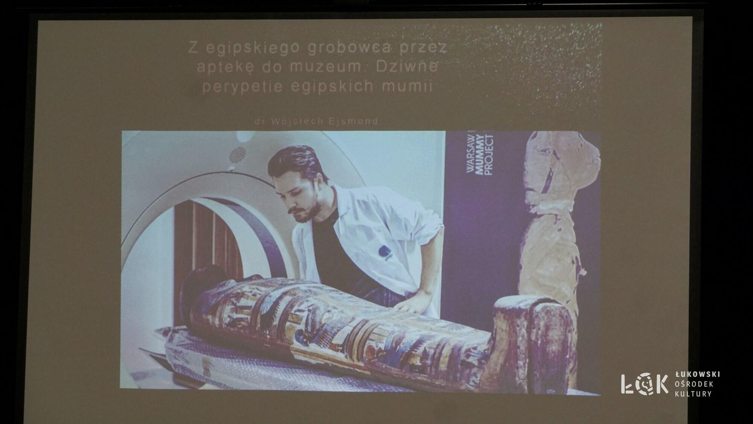 Spotkanie pt. „Z grobowca do apteki. Zaskakująca historia egipskich mumii” poprowadził dr Wojciech Ejsmond - archeolog z Polskiej Akademii Nauk, kierownik misji archeologicznej w Gebelein w południowym Egipcie oraz współkierownik interdyscyplinarnego projektu badań egipskich mumii przechowywanych w Muzeum Narodowym w Warszawie – Warsaw Mummy Project. Już po raz drugi mieliśmy przyjemność spotkać się z doktorem w Łukowskim Ośrodku Kultury. Podczas kwietniowego wydarzenia, poświęconego fascynującej kulturze i cywilizacji starożytnego Egiptu, porozmawialiśmy o niezwykle szerokim i zaskakującym wykorzystaniu mumii w różnych dziedzinach życia na przestrzeni wieków – od medycyny, gdzie sproszkowane szczątki uznawano za środek leczniczy, po sztukę, w której tzw. „brąz mumiowy” był składnikiem farb używanych przez malarzy. Dr Wojciech Ejsmond w niezwykle przystępny sposób przybliżył uczestnikom zarówno realia pracy archeologa, historię balsamowania, jak i najnowsze osiągnięcia nauki, które pozwalają dziś badać mumie bez naruszania ich struktury. Było to kolejne spotkanie ŁUTW, inspirujące do ciągłego poszerzania wiedzy i odkrywania fascynujących aspektów historii oraz kultury naszego świata.