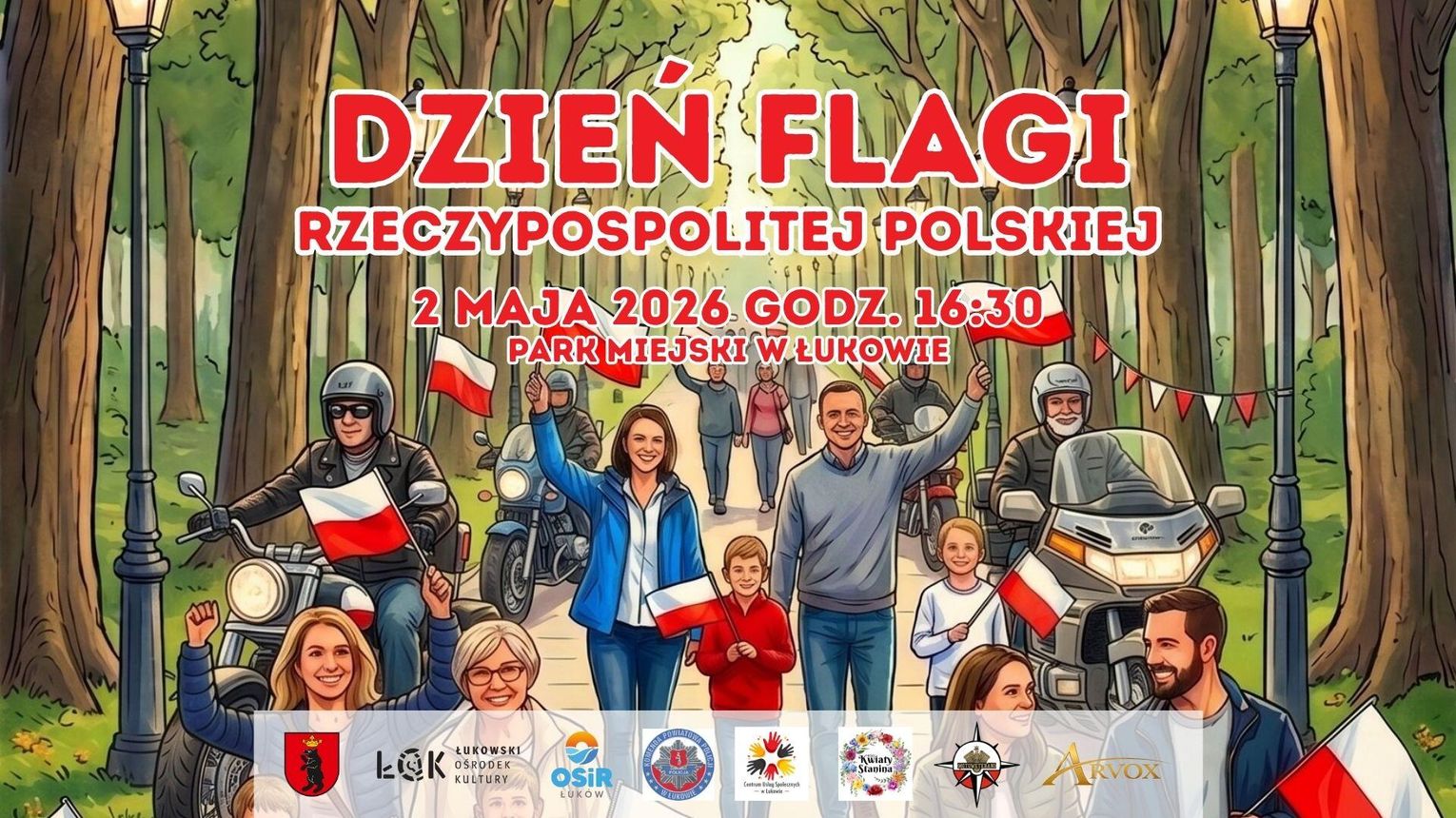 W tym roku majówkowe, patriotyczne obchody rozszerzamy o kolejne wydarzenie. 2 maja, w Dzień Flagi Rzeczypospolitej Polskiej zapraszamy wszystkich do parku miejskiego na wyjątkowy, biało-czerwony piknik rodzinny!