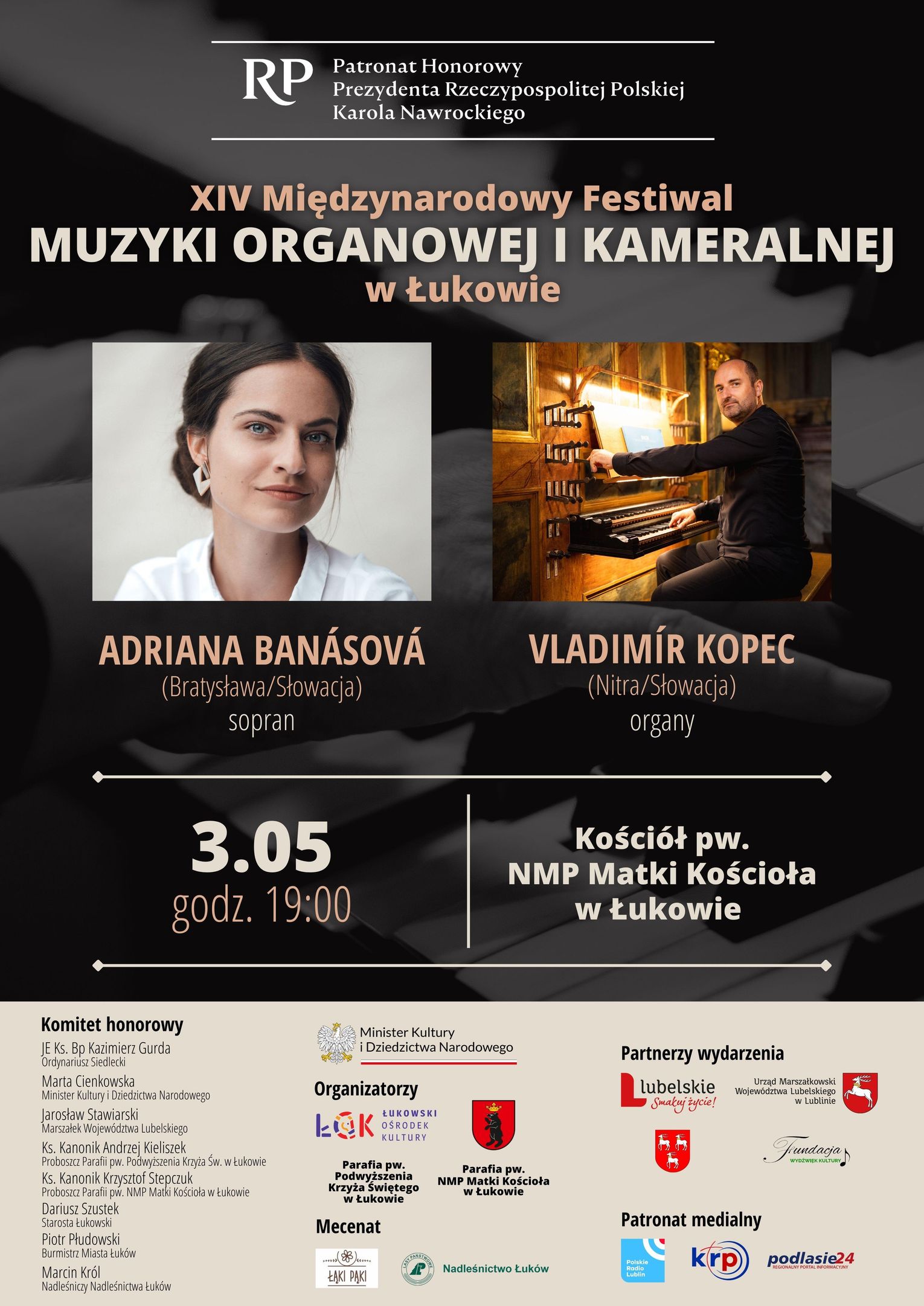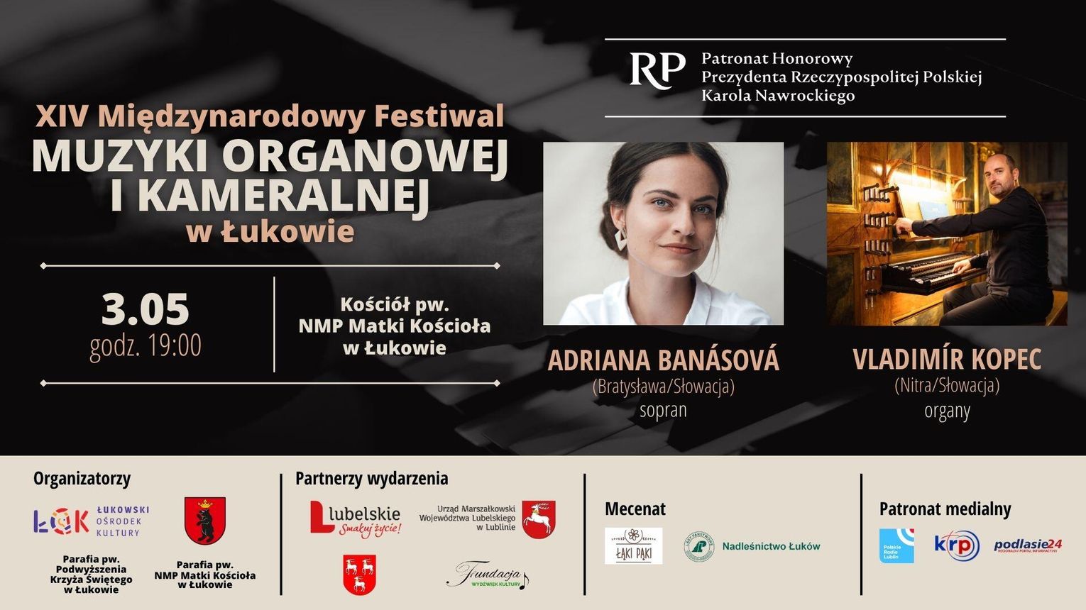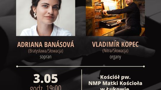 Wydarzenie odbędzie się w niedzielę 3 maja 2026r. o godz. 19:00 w Kościele pw. NMP Matki Kościoła w Łukowie. Wystąpią: Adriana Banásová (Bratysława/Słowacja) – sopran oraz Vladimír Kopec (Nitra/Słowacja) – organy. Partnerami wydarzenia są: Województwo Lubelskie „Lubelskie. Smakuj Życie!”, Powiat Łukowski oraz Fundacja Wydźwięk Kultury.