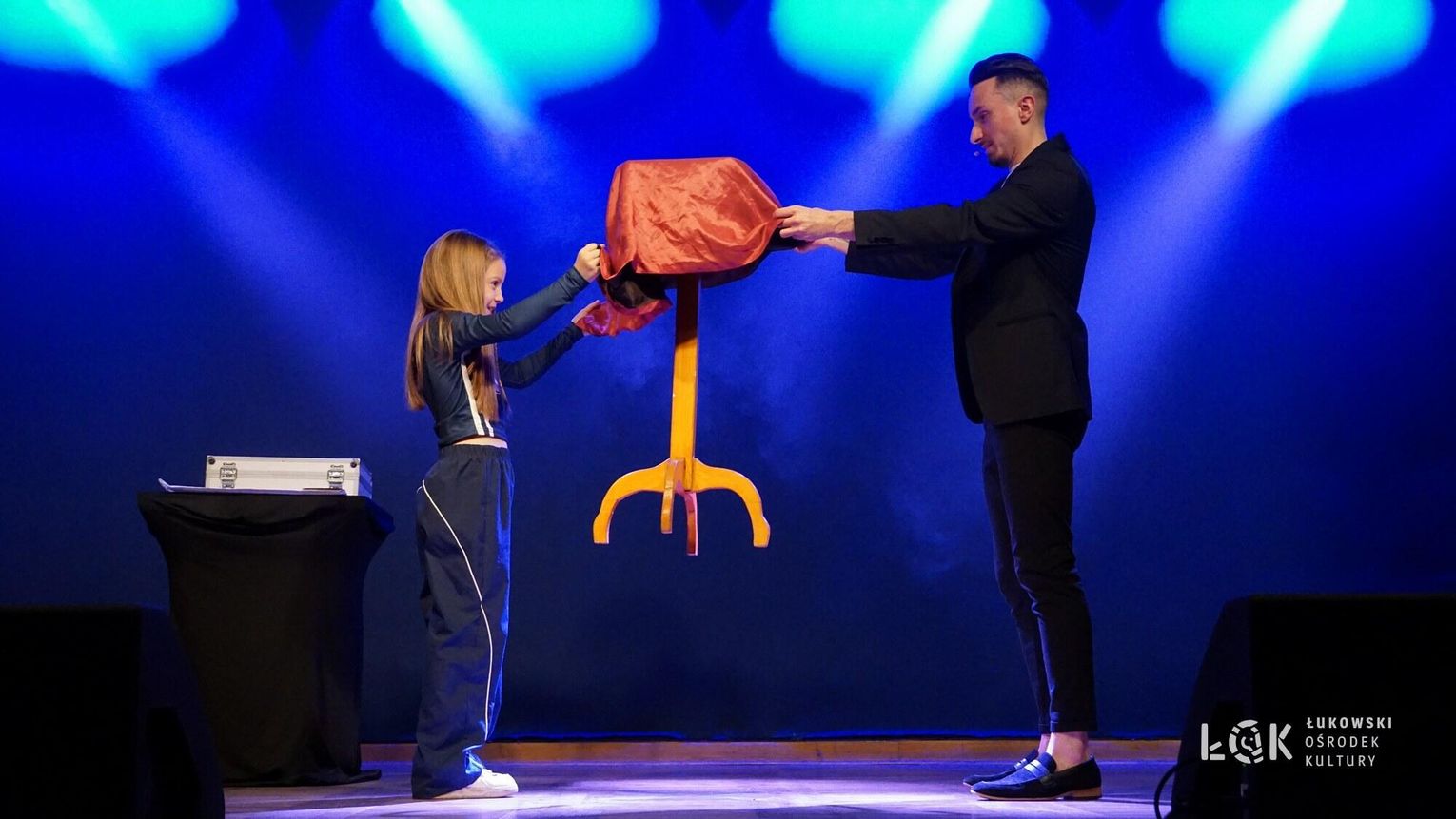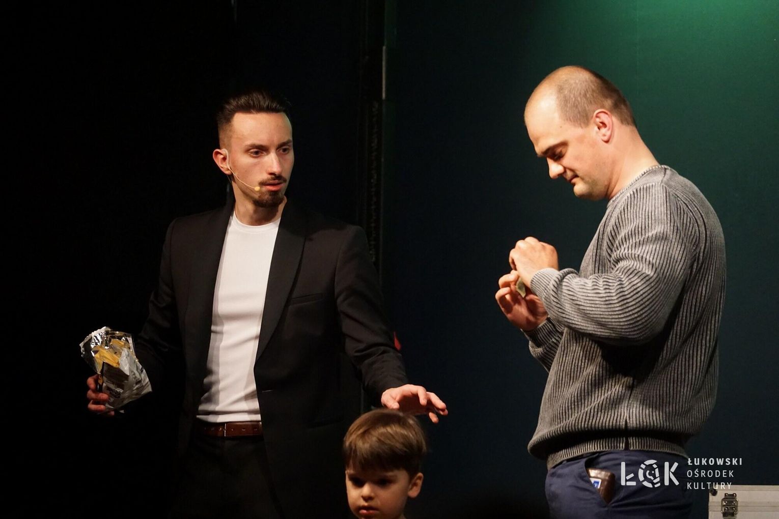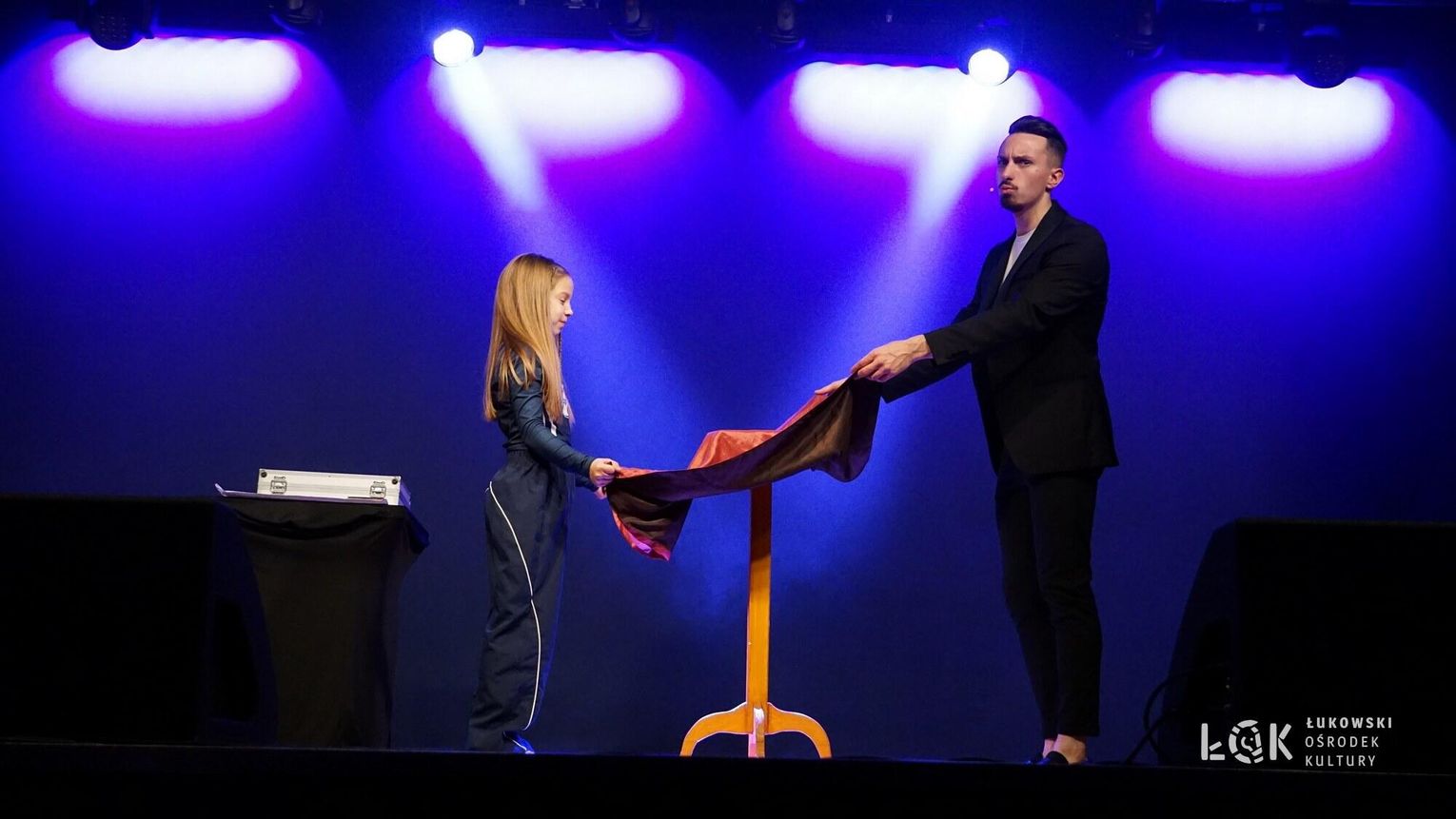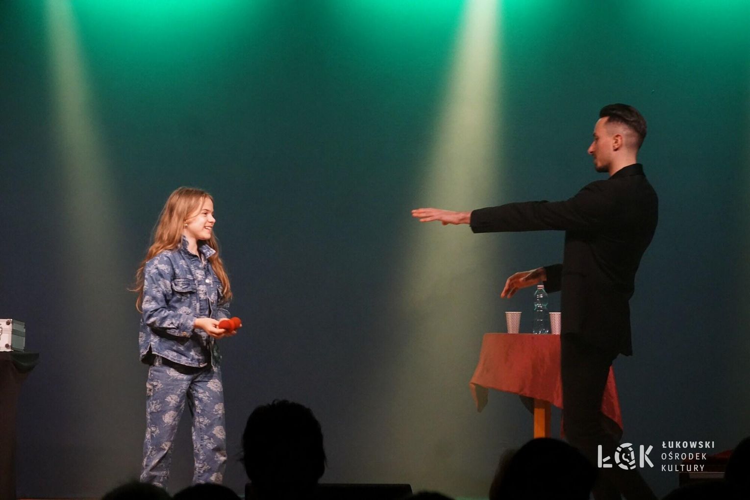 Na scenie wystąpił iluzjonista Paweł Kwiecień, prezentując spektakl pełen efektownych trików, humoru i emocji, które połączyły widzów w różnym wieku. Artysta zaprezentował widowisko łączące spektakularne iluzje z eleganckim poczuciem humoru. W trakcie występu publiczność mogła podziwiać m.in. lewitacje, znikające rzeczy oraz widowiskowe efekty wizualne, takie jak magiczna burza śnieżna. Każdy z elementów programu spotykał się z entuzjastyczną reakcją widowni, wywołując śmiech, zaskoczenie i gromkie brawa. Interaktywny charakter pokazu sprawił, że widzowie czuli się częścią spektaklu, a atmosfera radości i zabawy towarzyszyła uczestnikom od początku do końca. Wydarzenie udowodniło, że magia to nie tylko efektowne sztuczki, ale także emocje i doświadczenia pozostające w pamięci na długo. Całość przedstawienia została wzbogacona o starannie dobraną oprawę świetlną i muzyczną, tworząc spójny spektakl.