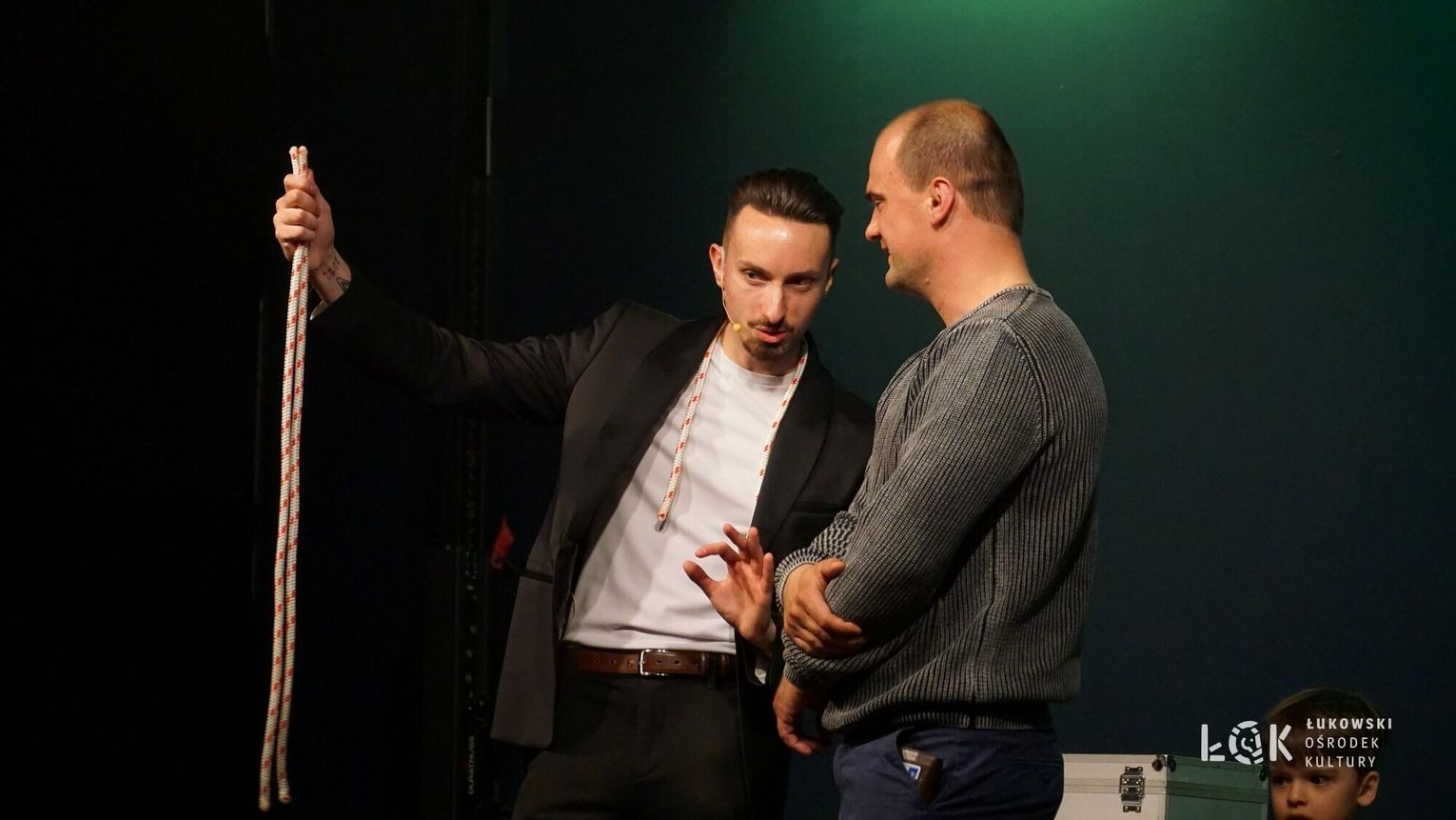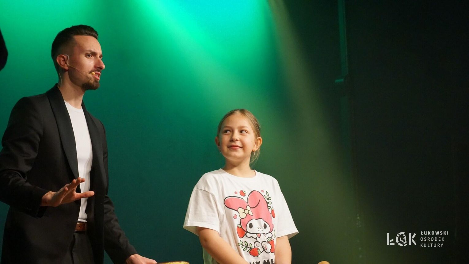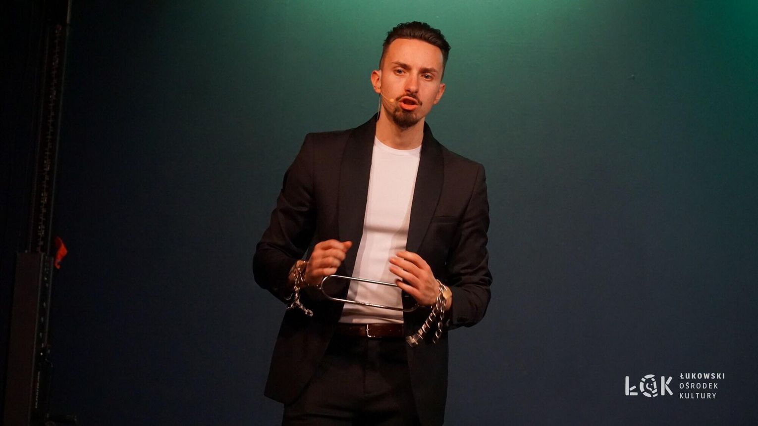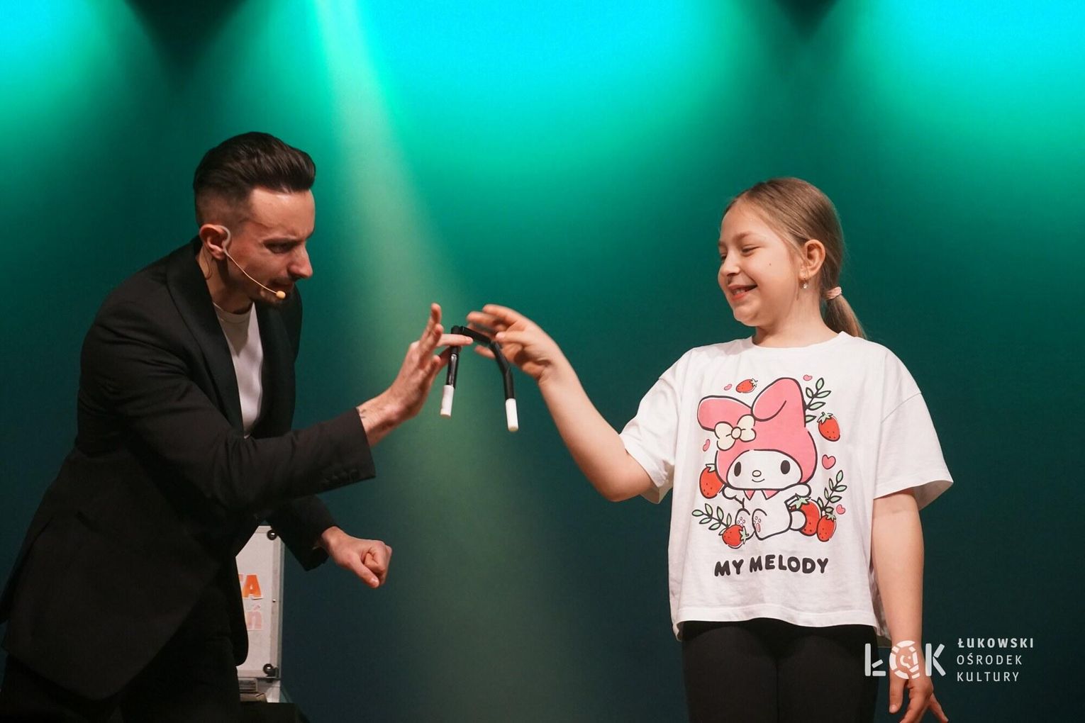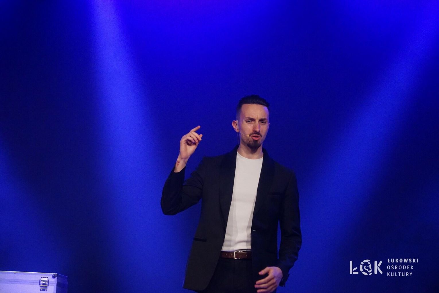 Na scenie wystąpił iluzjonista Paweł Kwiecień, prezentując spektakl pełen efektownych trików, humoru i emocji, które połączyły widzów w różnym wieku. Artysta zaprezentował widowisko łączące spektakularne iluzje z eleganckim poczuciem humoru. W trakcie występu publiczność mogła podziwiać m.in. lewitacje, znikające rzeczy oraz widowiskowe efekty wizualne, takie jak magiczna burza śnieżna. Każdy z elementów programu spotykał się z entuzjastyczną reakcją widowni, wywołując śmiech, zaskoczenie i gromkie brawa. Interaktywny charakter pokazu sprawił, że widzowie czuli się częścią spektaklu, a atmosfera radości i zabawy towarzyszyła uczestnikom od początku do końca. Wydarzenie udowodniło, że magia to nie tylko efektowne sztuczki, ale także emocje i doświadczenia pozostające w pamięci na długo. Całość przedstawienia została wzbogacona o starannie dobraną oprawę świetlną i muzyczną, tworząc spójny spektakl.