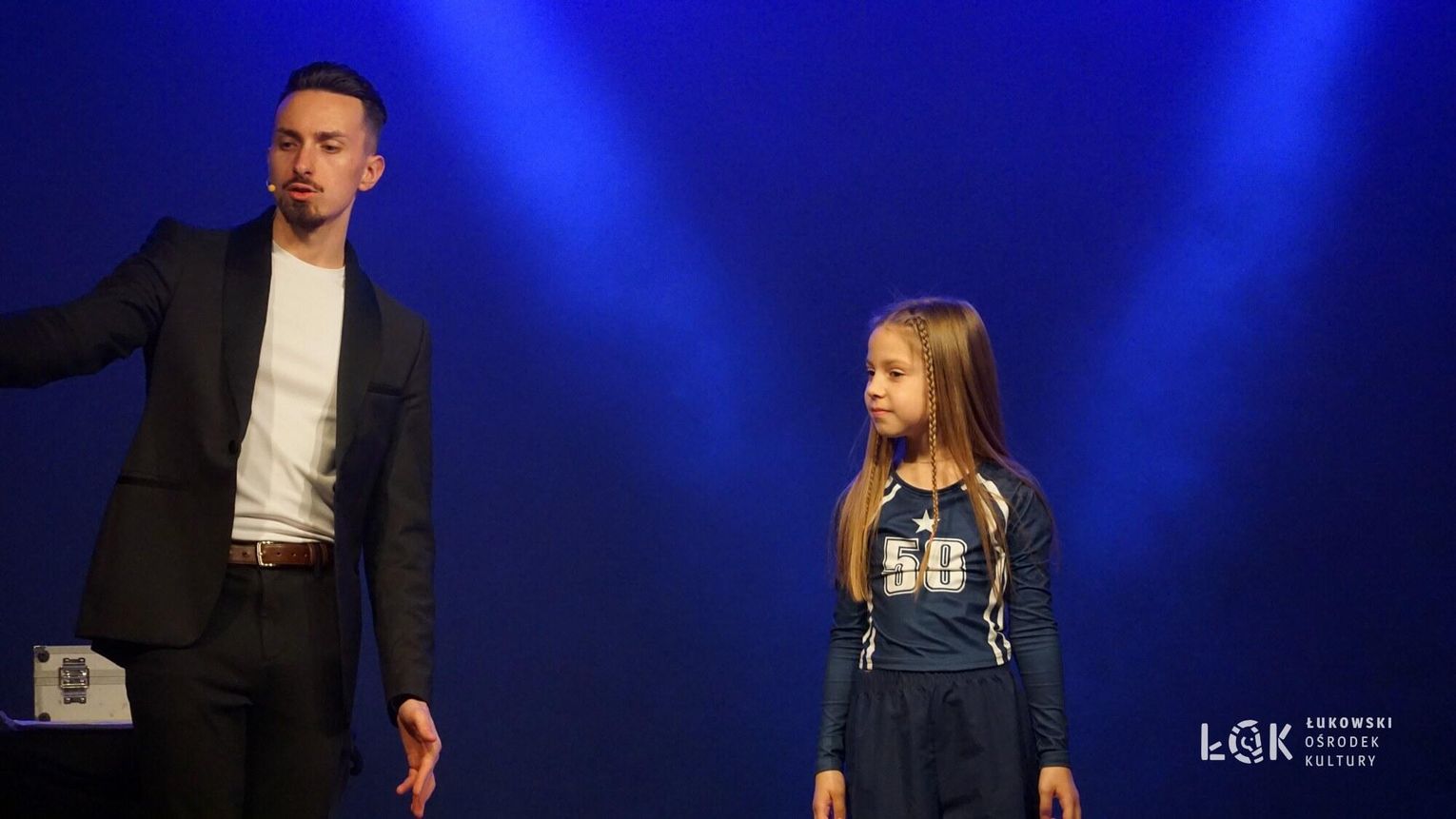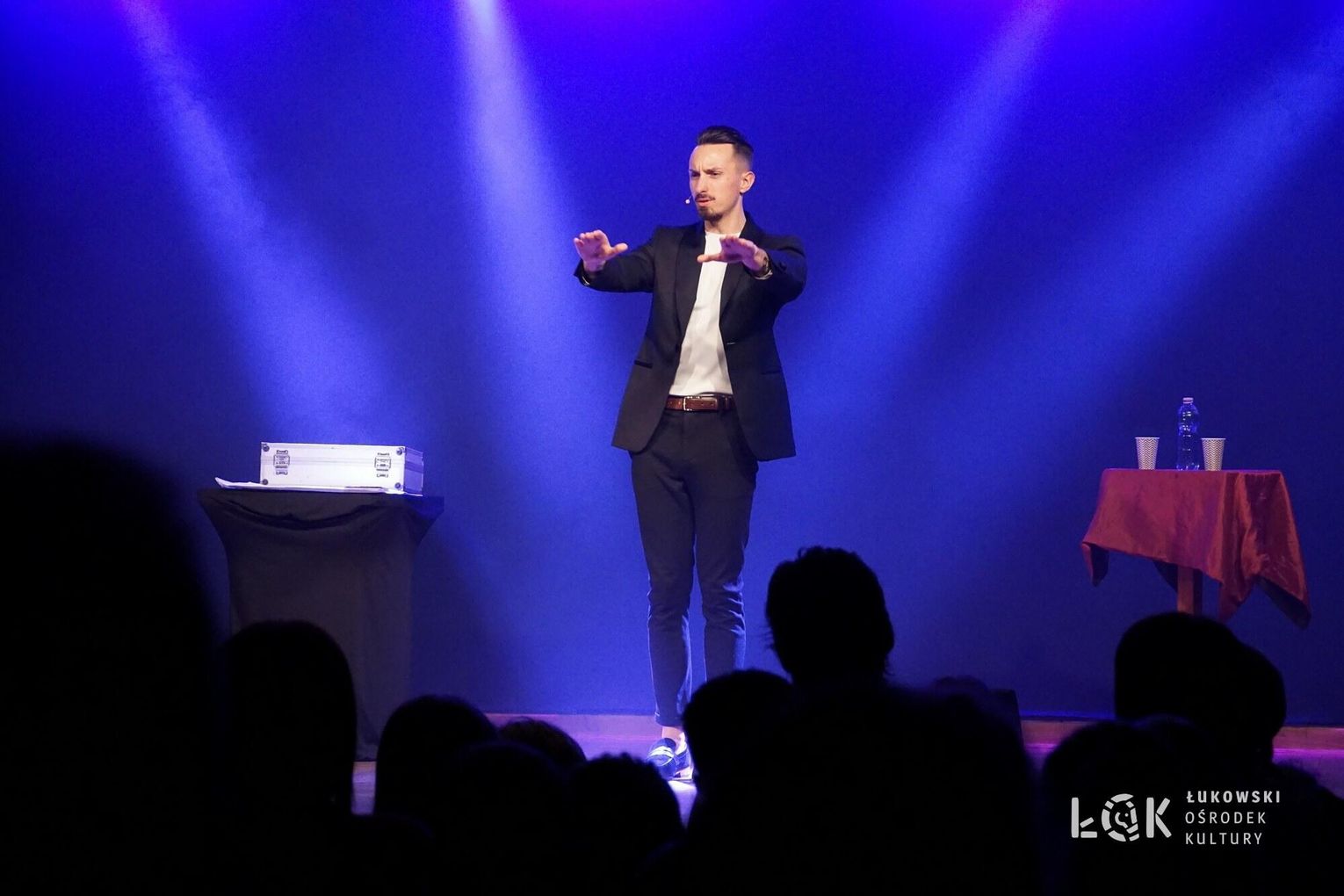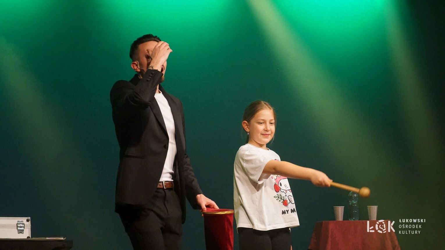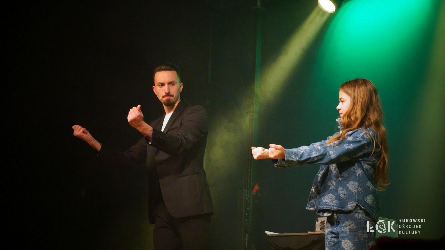 Na scenie wystąpił iluzjonista Paweł Kwiecień, prezentując spektakl pełen efektownych trików, humoru i emocji, które połączyły widzów w różnym wieku. Artysta zaprezentował widowisko łączące spektakularne iluzje z eleganckim poczuciem humoru. W trakcie występu publiczność mogła podziwiać m.in. lewitacje, znikające rzeczy oraz widowiskowe efekty wizualne, takie jak magiczna burza śnieżna. Każdy z elementów programu spotykał się z entuzjastyczną reakcją widowni, wywołując śmiech, zaskoczenie i gromkie brawa. Interaktywny charakter pokazu sprawił, że widzowie czuli się częścią spektaklu, a atmosfera radości i zabawy towarzyszyła uczestnikom od początku do końca. Wydarzenie udowodniło, że magia to nie tylko efektowne sztuczki, ale także emocje i doświadczenia pozostające w pamięci na długo. Całość przedstawienia została wzbogacona o starannie dobraną oprawę świetlną i muzyczną, tworząc spójny spektakl.