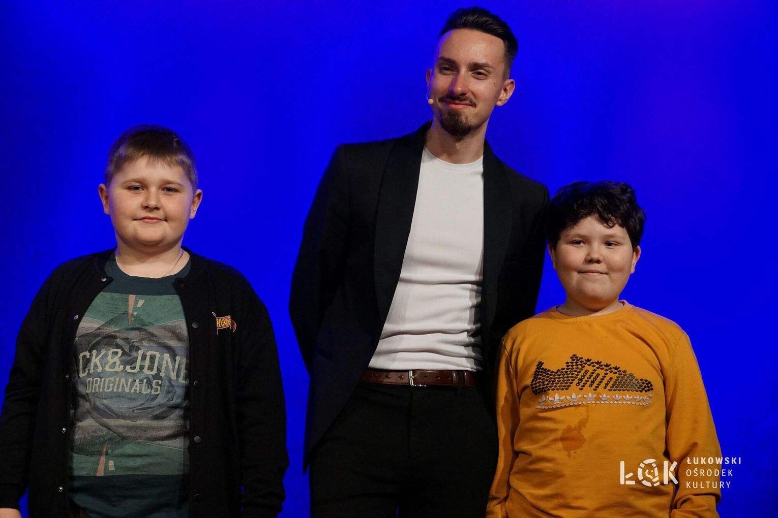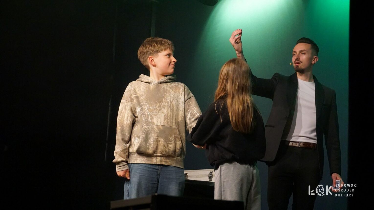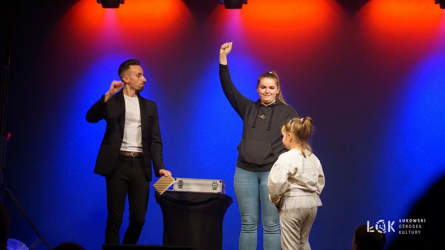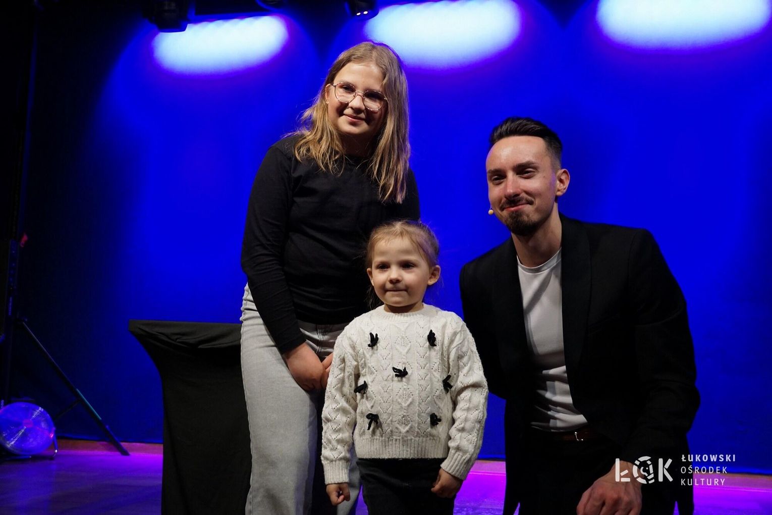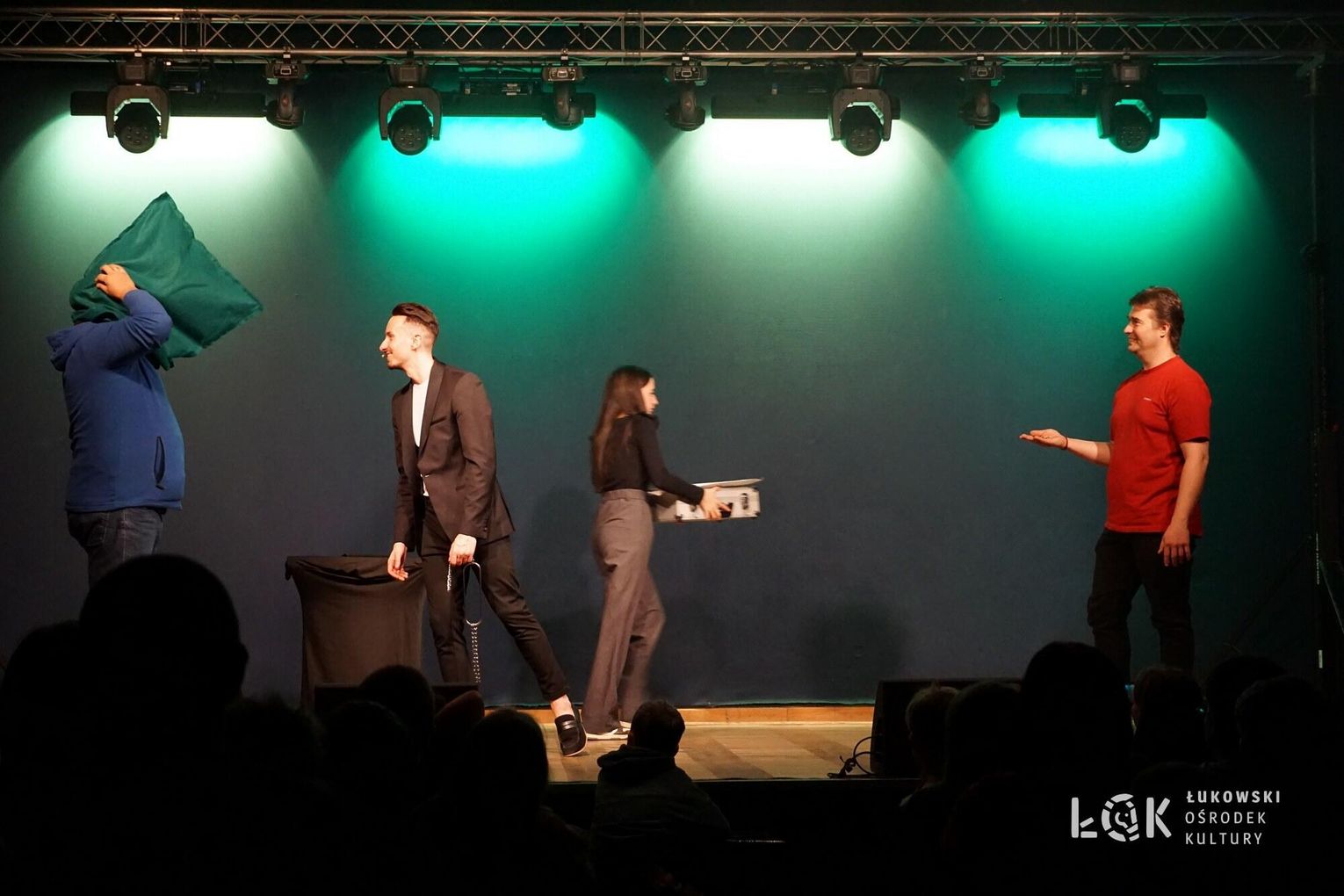 Na scenie wystąpił iluzjonista Paweł Kwiecień, prezentując spektakl pełen efektownych trików, humoru i emocji, które połączyły widzów w różnym wieku. Artysta zaprezentował widowisko łączące spektakularne iluzje z eleganckim poczuciem humoru. W trakcie występu publiczność mogła podziwiać m.in. lewitacje, znikające rzeczy oraz widowiskowe efekty wizualne, takie jak magiczna burza śnieżna. Każdy z elementów programu spotykał się z entuzjastyczną reakcją widowni, wywołując śmiech, zaskoczenie i gromkie brawa. Interaktywny charakter pokazu sprawił, że widzowie czuli się częścią spektaklu, a atmosfera radości i zabawy towarzyszyła uczestnikom od początku do końca. Wydarzenie udowodniło, że magia to nie tylko efektowne sztuczki, ale także emocje i doświadczenia pozostające w pamięci na długo. Całość przedstawienia została wzbogacona o starannie dobraną oprawę świetlną i muzyczną, tworząc spójny spektakl.